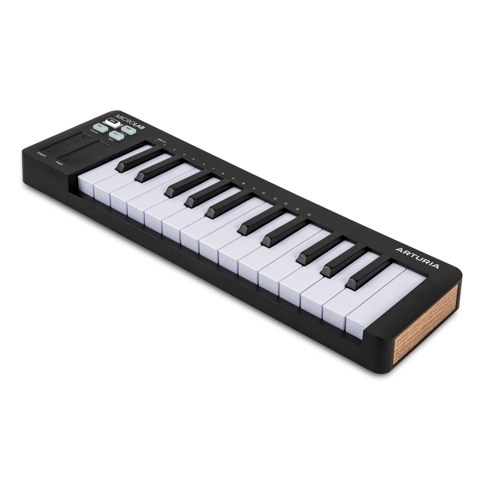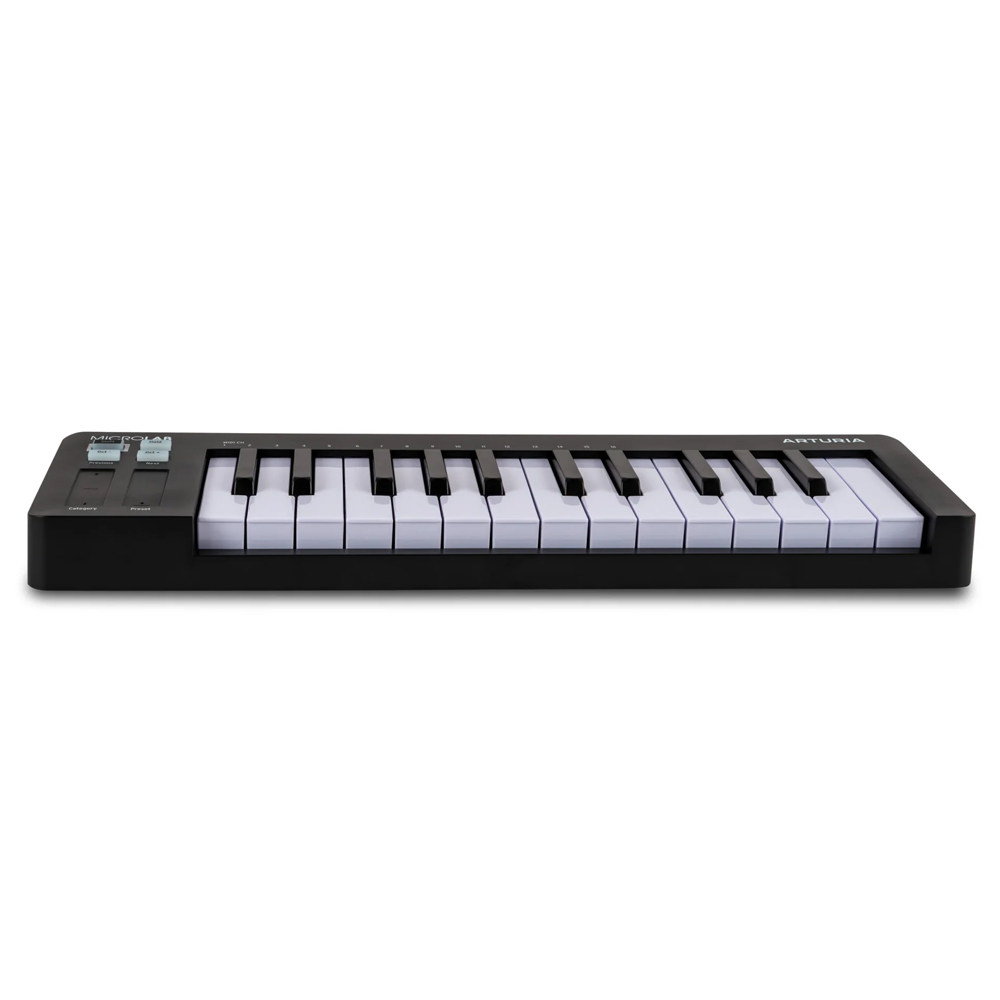Arturia MicroLab mk3 — компактна та зручна MIDI-клавіатура з 25 клавішами, чутливими до натискання. Вона поєднує якісну клавіатуру з мінімалістичним дизайном і простим керуванням. Сенсорні стрічки для тону та модуляції, функції Hold і One Finger Chord роблять гру інтуїтивною та виразною.