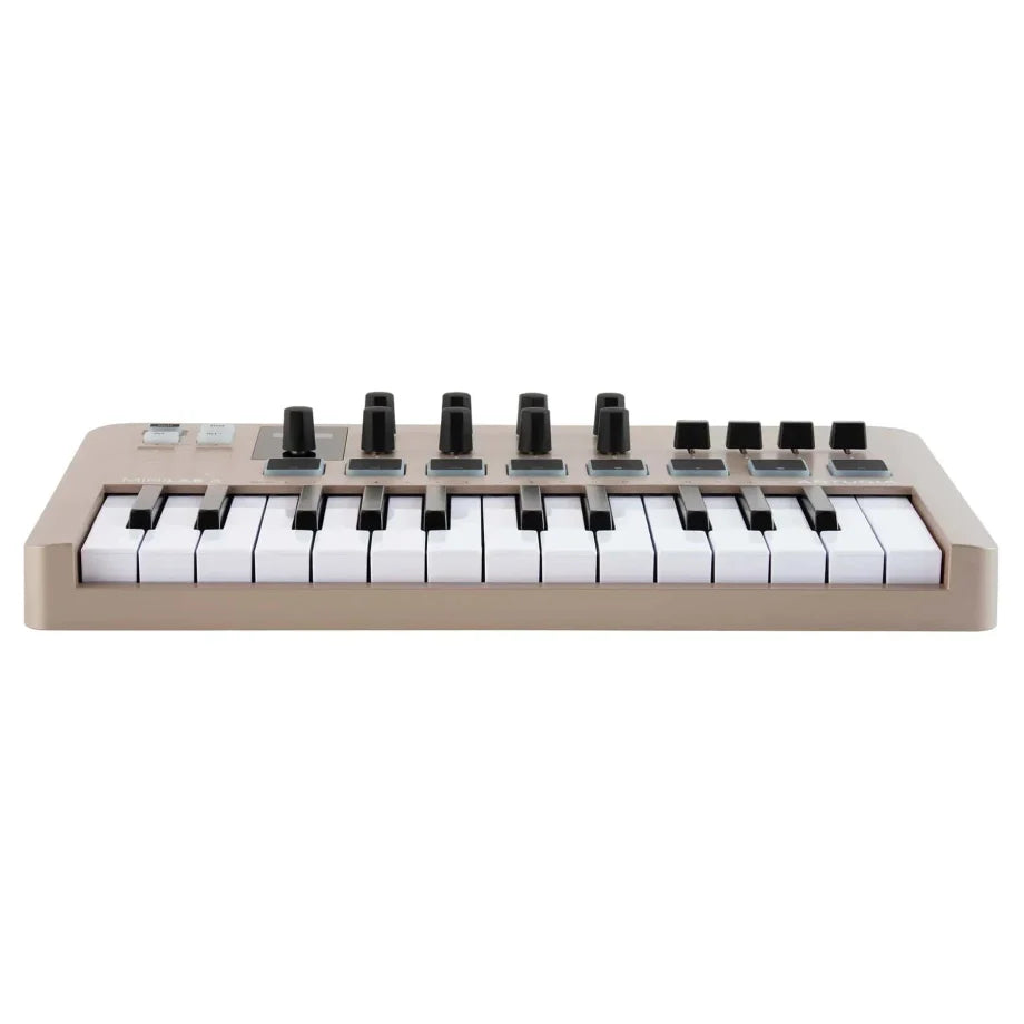 Клавіатура має 25 клавіш, чутливих до сили натиску, що забезпечує приємне виконання навіть у межах двох октав. Над клавішами розташовано зручні елементи керування для швидкого доступу до основних функцій.