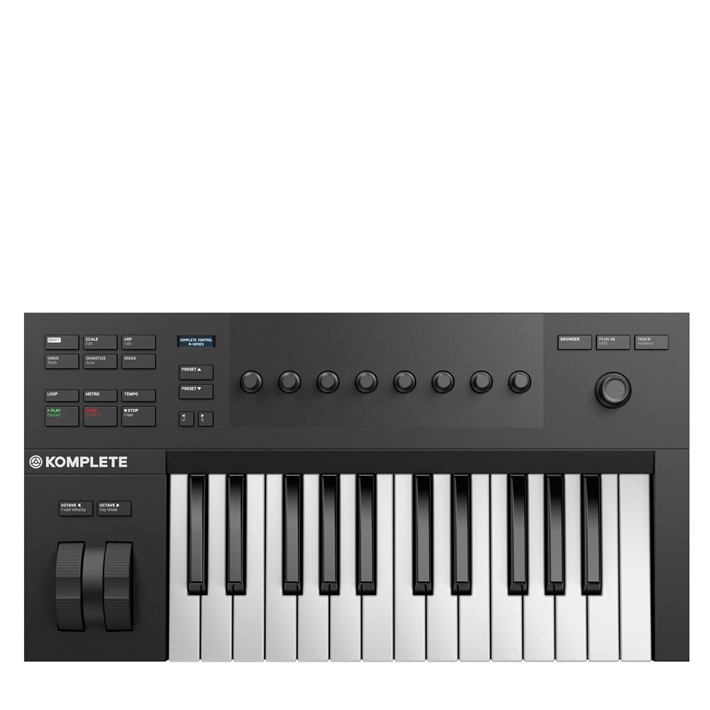 Native Instruments Komplete Kontrol A25 — компактна смарт MIDI-клавіатура для студії й подорожей — 25 повнорозмірних клавіш із чутливістю до швидкості, чіткий OLED-дисплей та глибока інтеграція з екосистемою NKS допомагають швидко знаходити звуки й керувати параметрами без відволікань. Режими Scale/Chord/Arp через програму Komplete Kontrol прискорюють написання партій і гармоній, а продуманий мапінг дає інтуїтивний контроль над інструментами та ефектами просто з клавіатури.