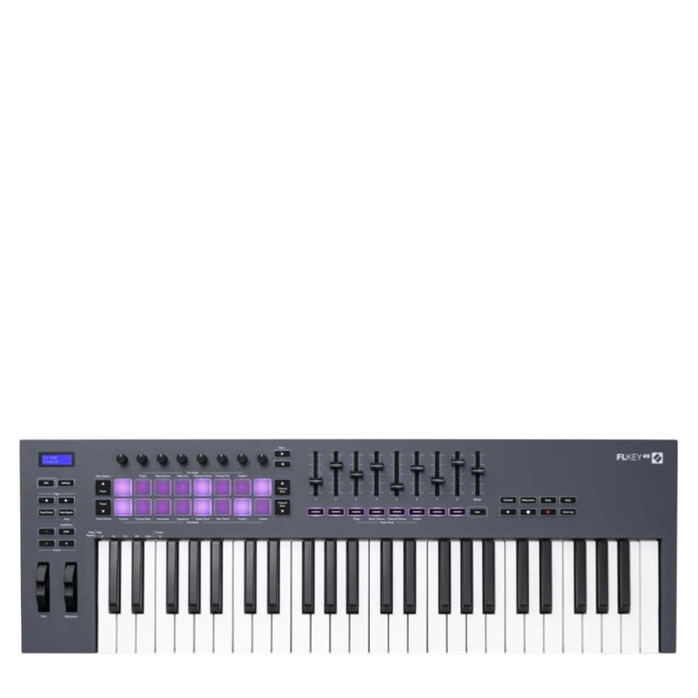 Novation FLkey 49 — клавіатура, спеціально розроблена для тісної інтеграції з FL Studio, що дає змогу керувати мікшером, секвенсором і інструментами без використання миші. Повнорозмірні клавіші та розширений набір контролерів роблять її зручною для студійної роботи та створення аранжувань.