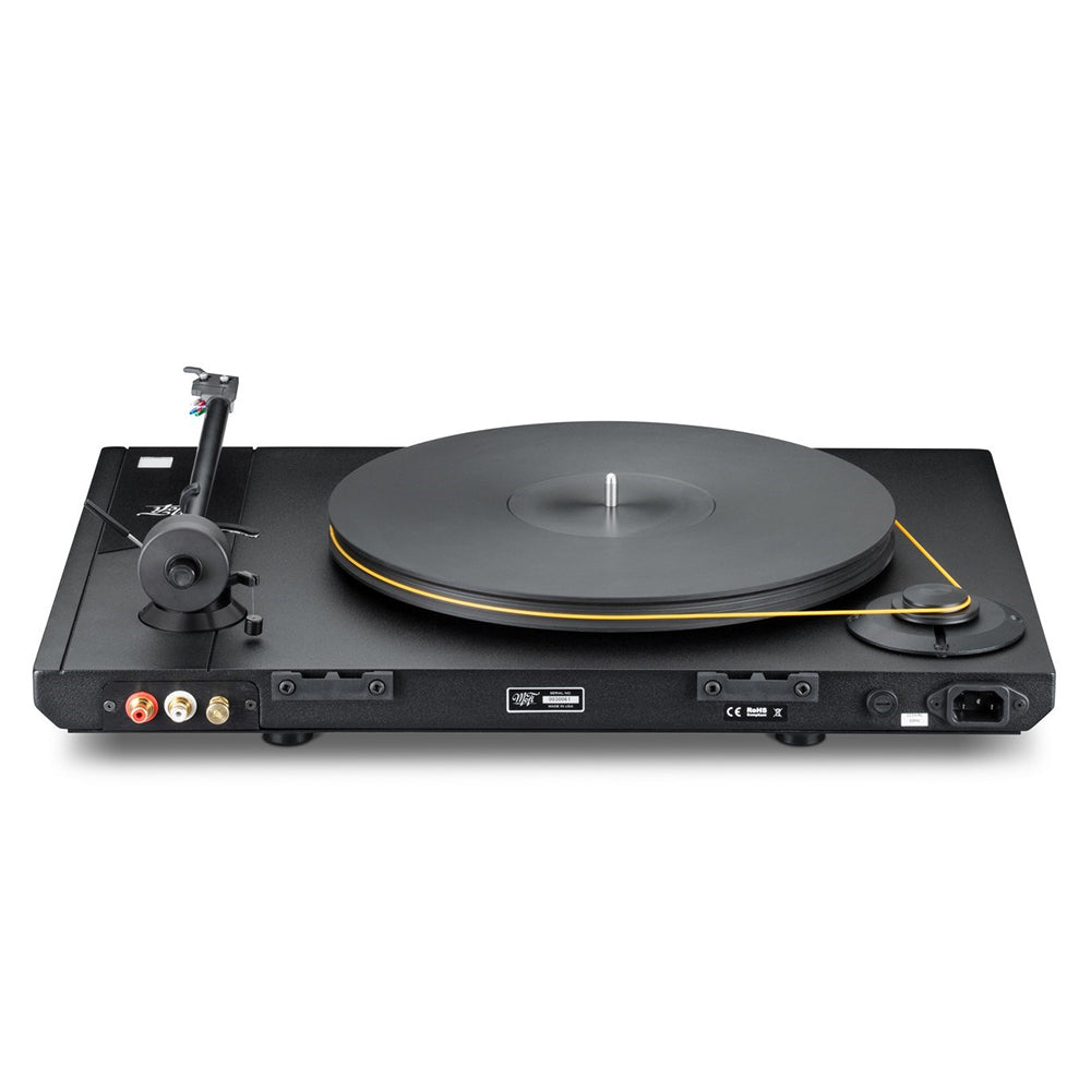 10-дюймовий тонарм Ultra, виготовлений у США, забезпечує плавне, точне зчитування з мінімальним тертям, а кабелі Cardas передають чистий сигнал до позолочених RCA-виходів.