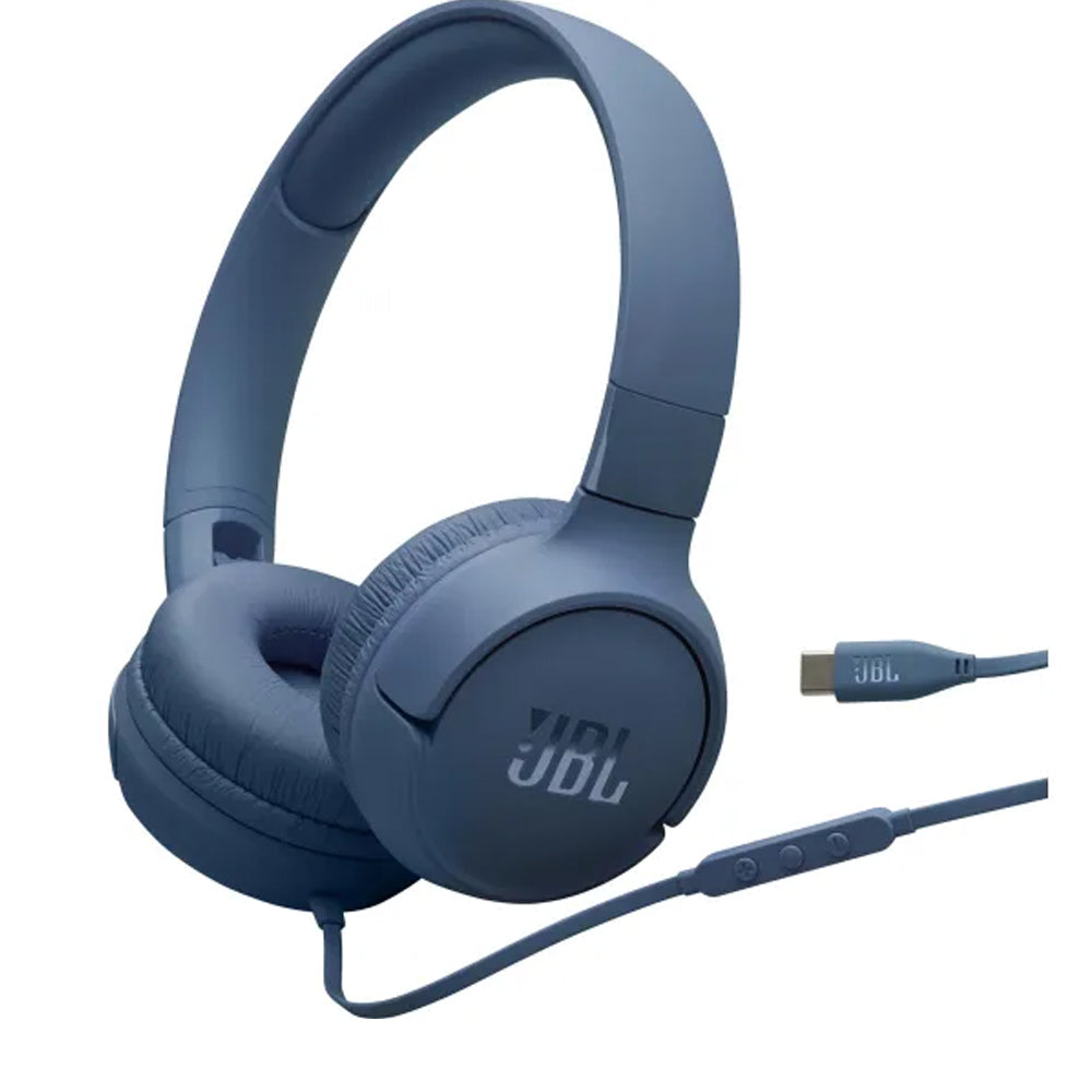 JBL Tune 520C Blu – дротові накладні навушники USB-C з Hi-Res аудіо, 32 мм драйвери з JBL Pure Bass і DSP-обробкою, 10 Гц–40 кГц, пульт з мікрофоном і керуванням EQ пресетами, складаний формат для перенесення та стабільна сумісність з USB-C аудіопристроями без 3,5 мм.