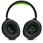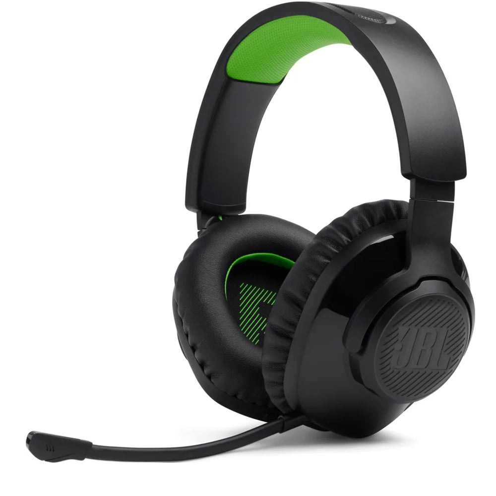 JBL Quantum 360X Console Black Green – бездротова гарнітура для Xbox з підключенням 2,4 ГГц через USB-адаптер, стабільний зв’язок без “відвалів” і відчутної затримки, точне позиціонування кроків і пострілів, знімний мікрофон для командного зв’язку, м’які амбушури для довгих матчів.