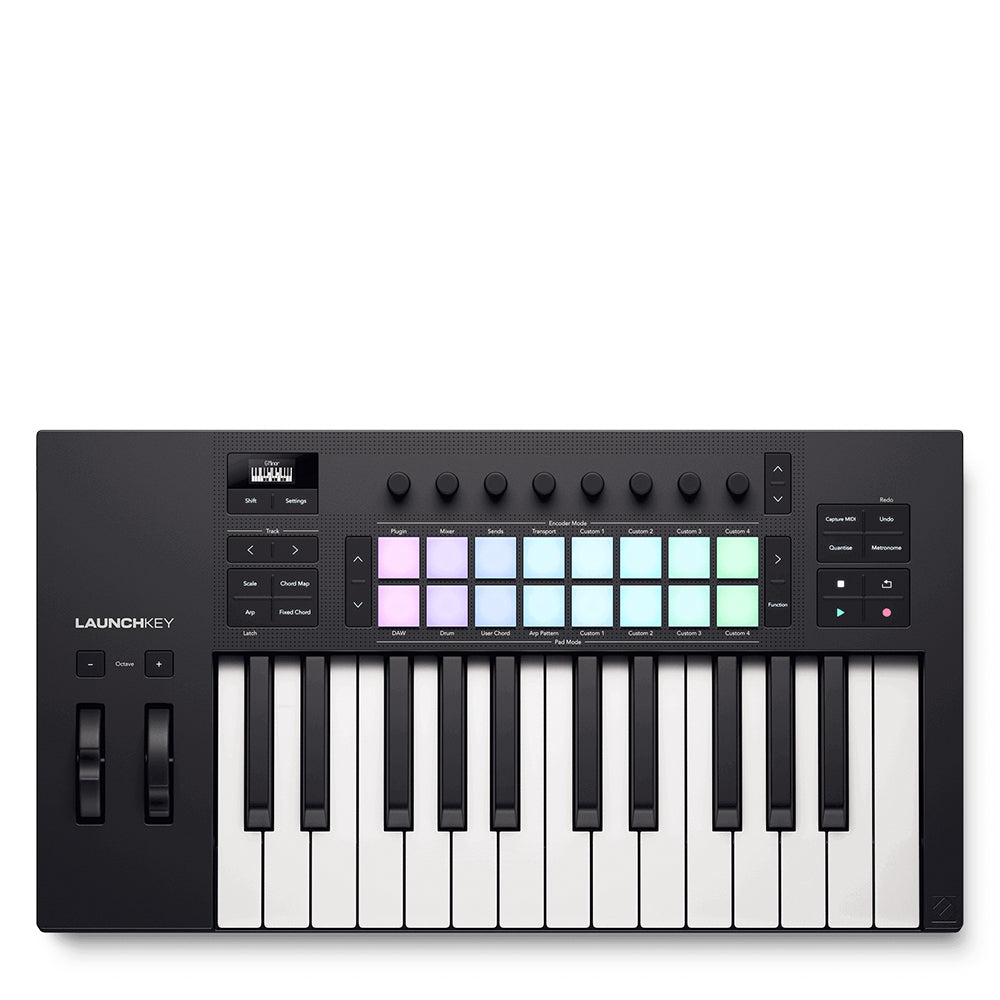 Пристрій оснащений 16 RGB-пэдами з чутливістю до velocity та polyphonic aftertouch, вісьмома енкодерами для точного налаштування параметрів і OLED-дисплеєм для зручної навігації. Завдяки підключенню через USB-C клавіатура живиться безпосередньо від комп’ютера, а її легкий корпус дозволяє легко транспортувати пристрій. Novation Launchkey 25 MK4 — ідеальний вибір для домашньої студії, подорожей або лайв-виступів.