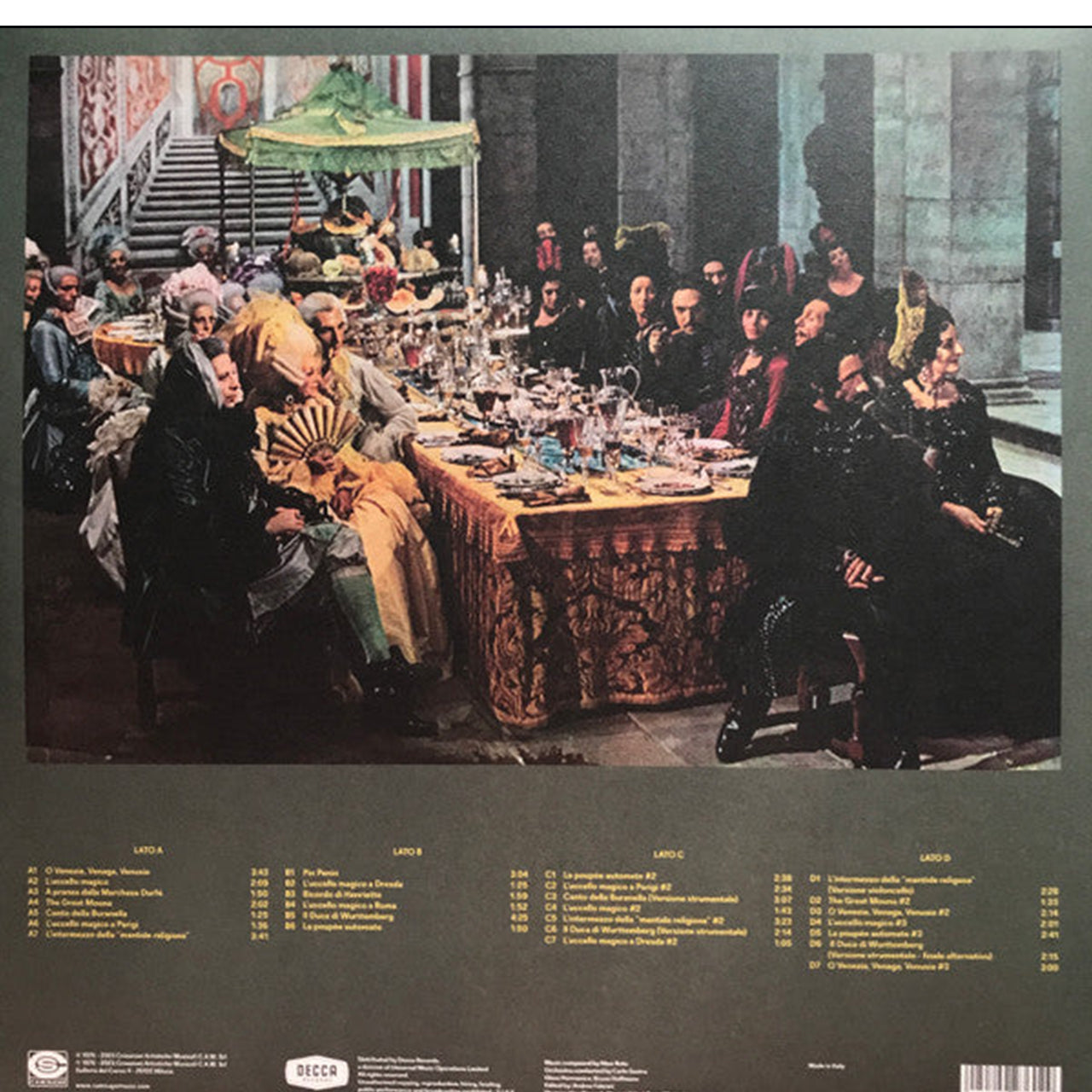 Вінілове видання [2LP] підкреслює акустику оркестрового запису: уважний мастеринґ, низький рівень поверхневих шумів і широкий динамічний діапазон дають природну сцену, повітря між інструментами та багатий тембр струн і клавесина і водночас забезпечує збалансоване звучання на домашніх аудіосистемах. Якісне пресування та розширене оформлення роблять реліз придатним як для колекційної полиці, так і для уважного прослуховування — еталонний вибір для шанувальників саундтреків, класичної музики та італійського арт-кіно.