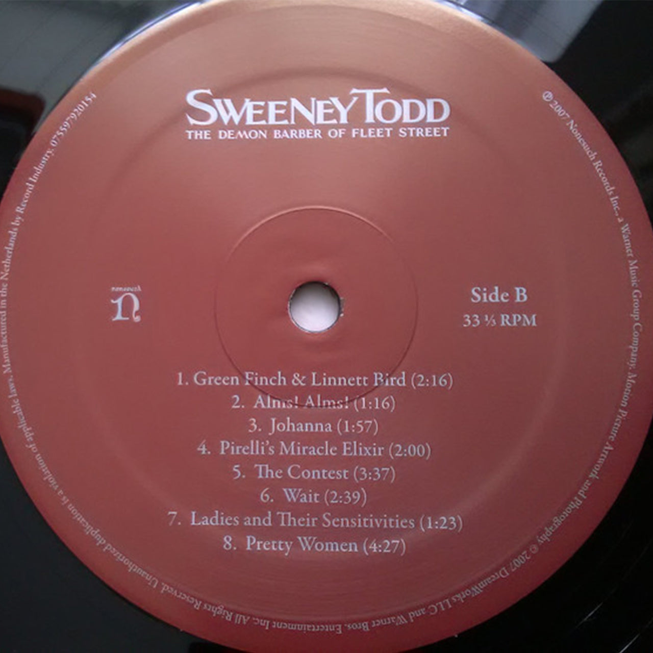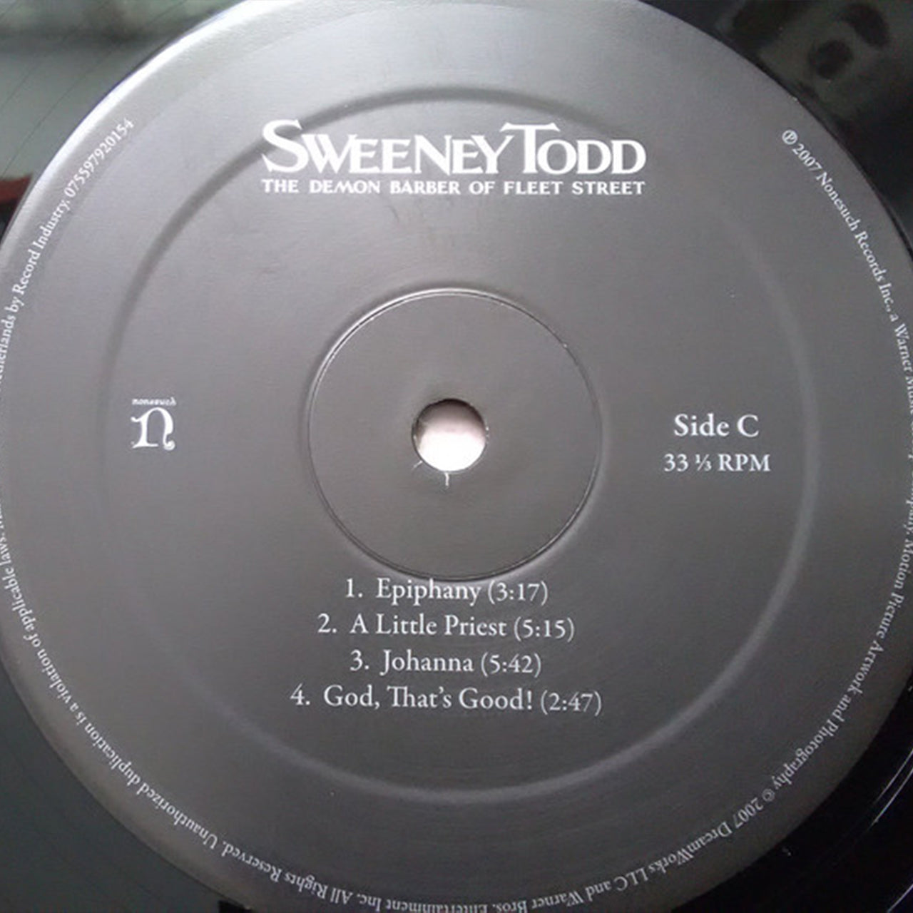 Stephen Sondheim – Sweeney Todd: The Demon Barber of Fleet Street (The Motion Picture Soundtrack) [2LP] — готичний мюзикл-саундтрек із похмурою оркестровкою, оперною драматургією та чорним гумором. Музика Соундгайма поєднує симфонічну помпезність із театральною гостротою, ведучи від прологу The Ballad of Sweeney Todd і дуетів з Місіс Ловетт до кульмінаційних номерів Johanna та Epiphany; хор, струнні й мідні створюють атмосферу вікторіанського Лондона з присмаком кармічної помсти.