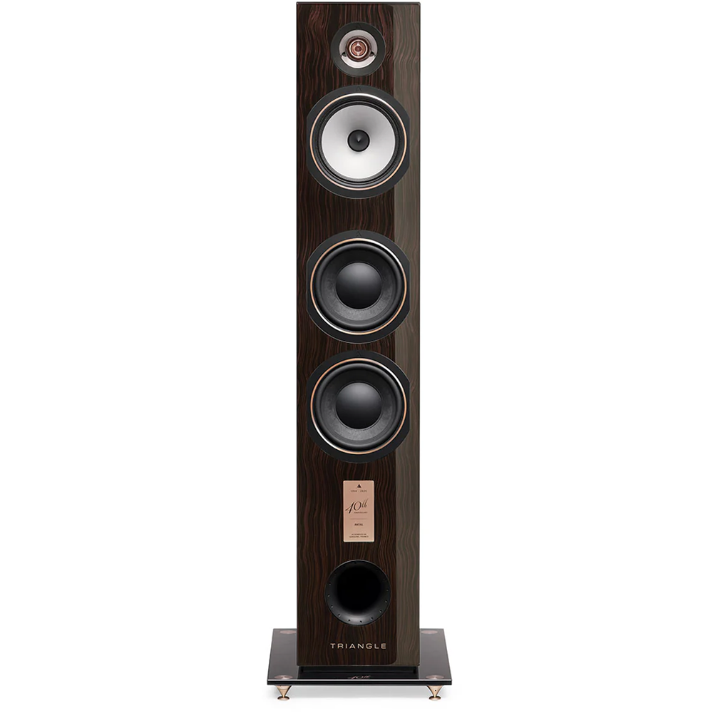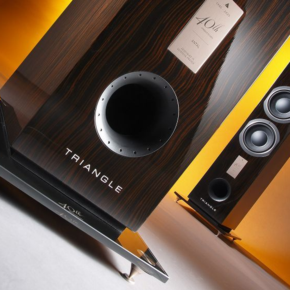 Triangle Antal 40th — ювілейна трисмугова акустика, випущена до 40-річчя компанії, з бездоганною конструкцією та чудовим звучанням. Вона оснащена новим твітером з магнієвим куполом, покритим рожевим золотом, що забезпечує чистоту і точність високих частот. Середньочастотний динамік з целюлозним дифузором та оновленою формою діафрагми гарантує точне відтворення вокалу та інструментів. Низькочастотні динаміки нового покоління з матеріалів на основі деревини, льону і карбону забезпечують глибокі і чіткі баси.
