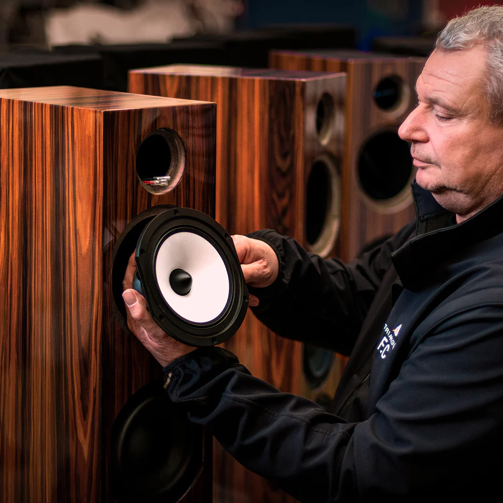 Корпус колонок виготовлений з MDF-панелей з внутрішніми перегородками для мінімізації вібрацій та резонансів, що дозволяє зберігати нейтральність звуку на будь-якій гучності. Оздоблення з натурального дерева та лаку, виготовлене вручну, додає елегантності.