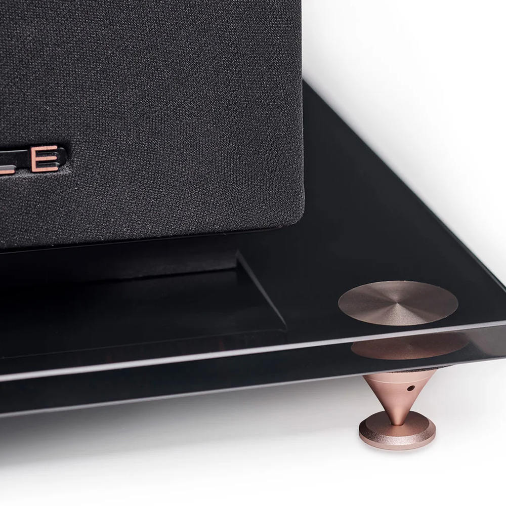 ВЧ-динамік: купол з магнієвого сплаву діаметром 25 мм, покритий рожевим золотом, у круглому металевому рупорі.