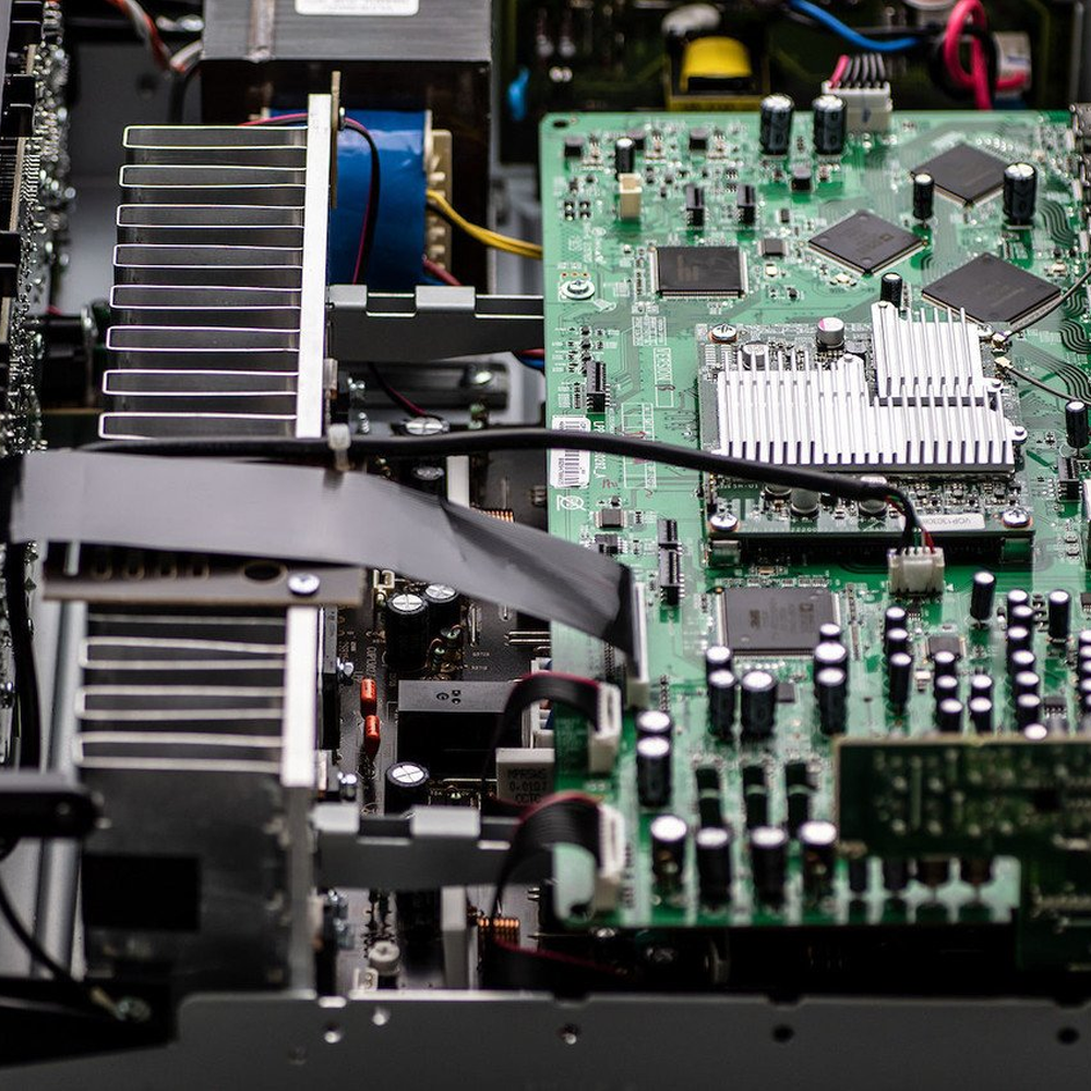 Входи: 5 × HDMI (4K/60 Гц, HDCP 2.3, HDR10, Dolby HLG, BT.2020), 2 лінійних RCA, вхід MM-фонокоректора (RCA), коаксіальний, 2 оптичних, USB для зовнішніх накопичувачів (на фронтальній панелі), LAN-інтерфейс