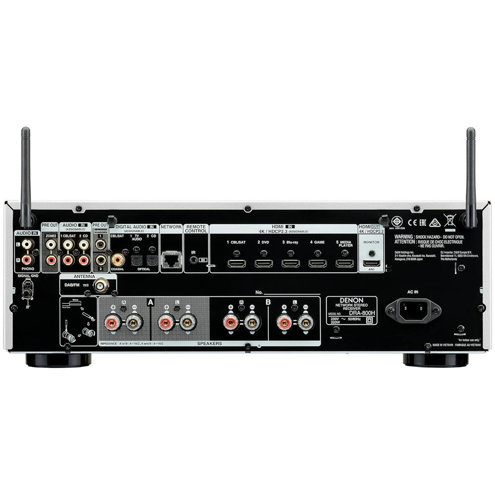 Двоканальний Hi-Fi-ресивер Denon DRA-800H оснащений дискретним підсилювачем потужністю 100 Вт на канал (8 Ом) та трансформатором із проводу OFC-меді. Симетрична схема з ретельно підібраними компонентами забезпечує мінімальні втрати сигналу. Є регулятори балансу та тембрів із можливістю обходу (режим Direct), а за цифро-аналогове перетворення відповідає 32-бітовий ЦАП AKM AK4458.