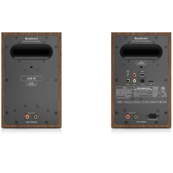 Audio Pro A28 – це активна двосмугова акустична система, що ідеально поєднує скандинавський мінімалізм, функціональність та потужний Hi-Fi звук. Ці полиці є закінченим аудіокомплексом, оскільки оснащені вбудованим підсилювачем класу D із сумарною потужністю 2x75 Вт. Елегантний корпус з фазоінвертором дозволяє системі створювати глибокий та масивний бас, який відчувається фізично, при цьому зберігаючи прозорість верхніх частот.