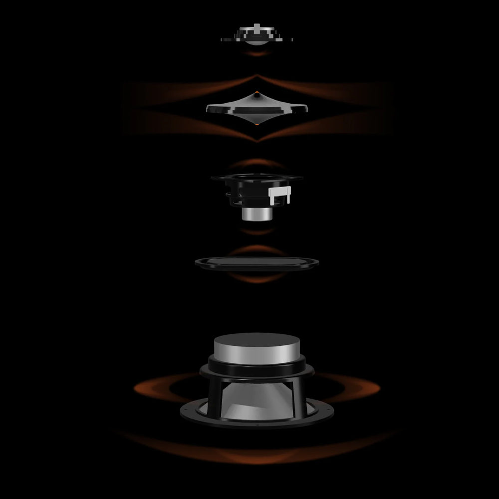 Trettitre TreSound 1 — висококласна бездротова акустична система з впізнаваним мінімалістичним дизайном та насиченим, деталізованим звучанням. Циліндричний корпус забезпечує стабільну резонансну основу, а сучасна схема підсилення гарантує чисте та збалансоване відтворення на будь-якому рівні гучності. Стерео-конфігурація формує широку звукову сцену, наповнюючи приміщення глибоким і об’ємним звуком.