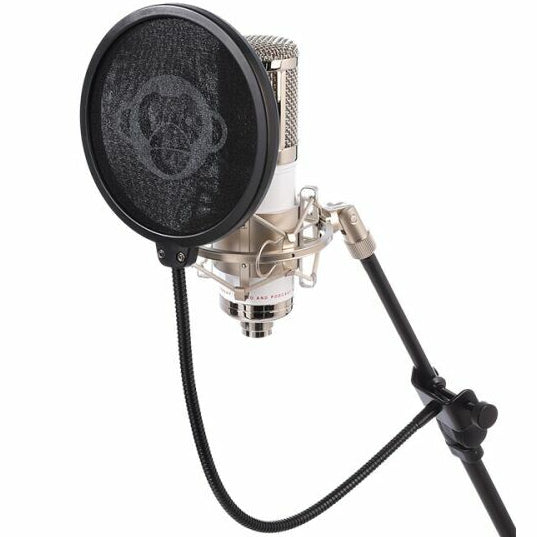 Конструкція Monkey Pop включає міцне пластикове кільце та гнучке кріплення типу «гусяча шия» із затискним гвинтом, що дозволяє легко та надійно зафіксувати фільтр на стійці мікрофона й точно налаштувати його положення. Це універсальний аксесуар, сумісний із більшістю студійних мікрофонів, який поєднує надійність, ергономіку та стильний дизайн у фірмовому стилі Monkey Banana.