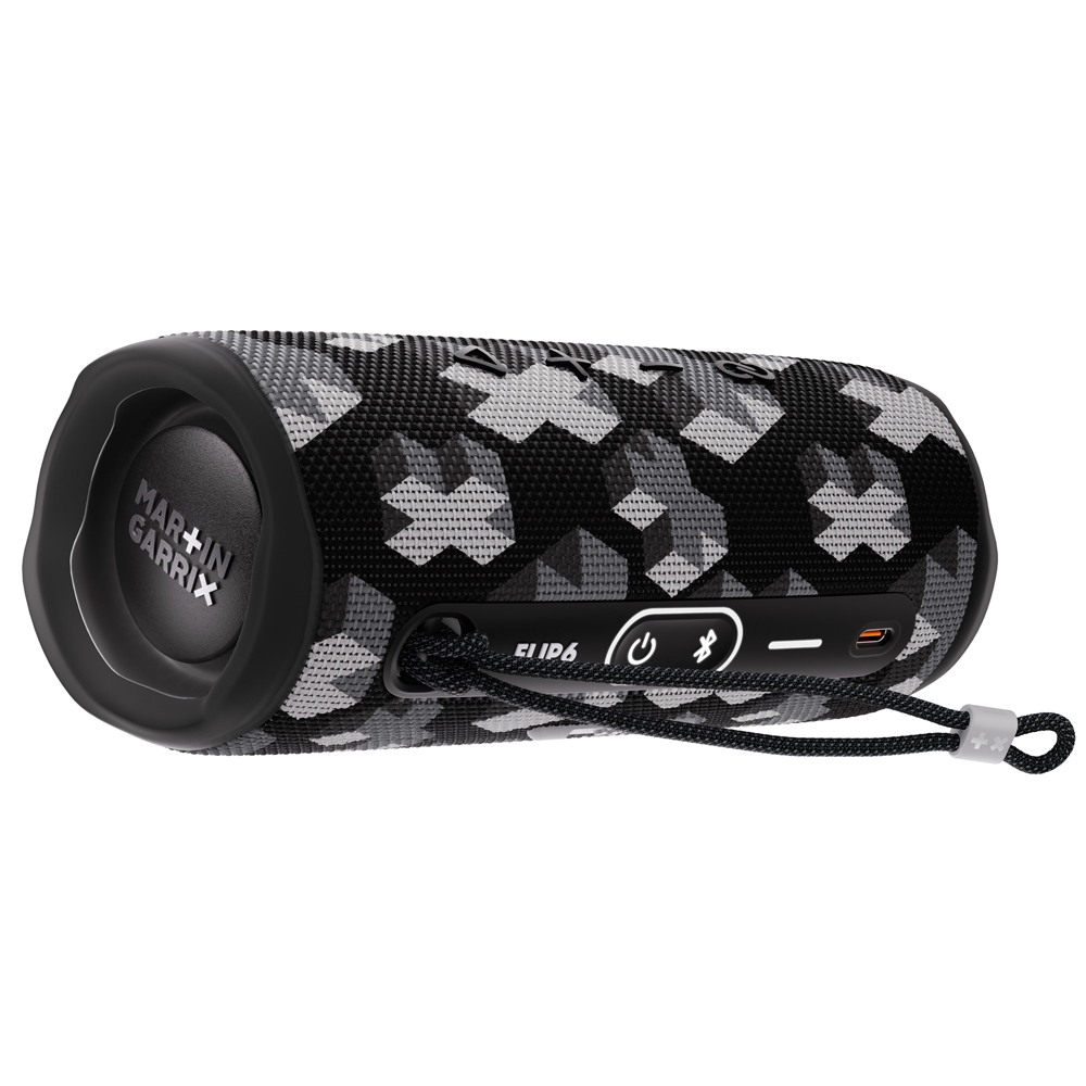 Ваша пригода. Ваш саундтрек. Портативна Bluetooth-колонкаJBL Flip 6 забезпечує потужний фірмовий звук JBL. Виняткова чіткість завдяки оптимізованому динаміку у формі гоночної траси, окремому твітеру та подвійному радіатору низьких частот.