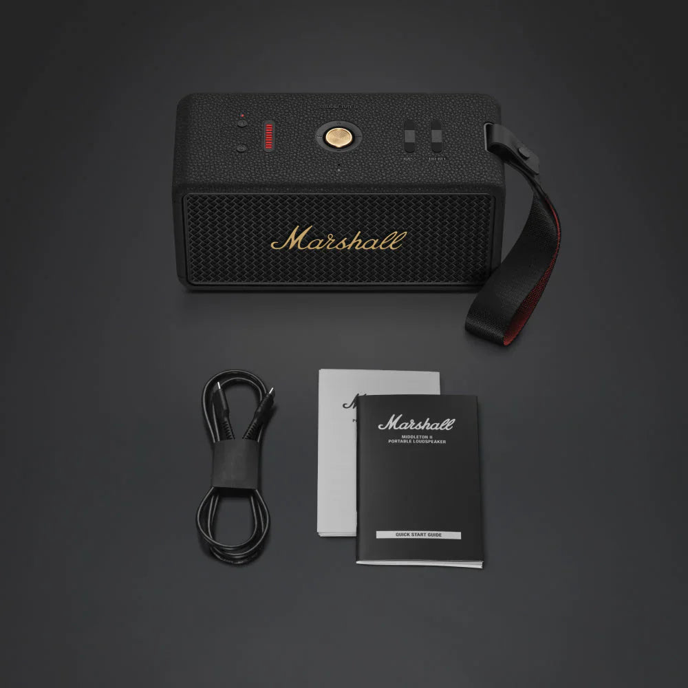 Вбудований мікрофон, багатофункційна ручка керування та підтримка Bluetooth 5.3 з LE Audio роблять користування максимально зручним. Middleton II створена для тих, хто цінує легендарне звучання Marshall і хоче мати потужну, стильну та витривалу колонку для будь-яких ситуацій.