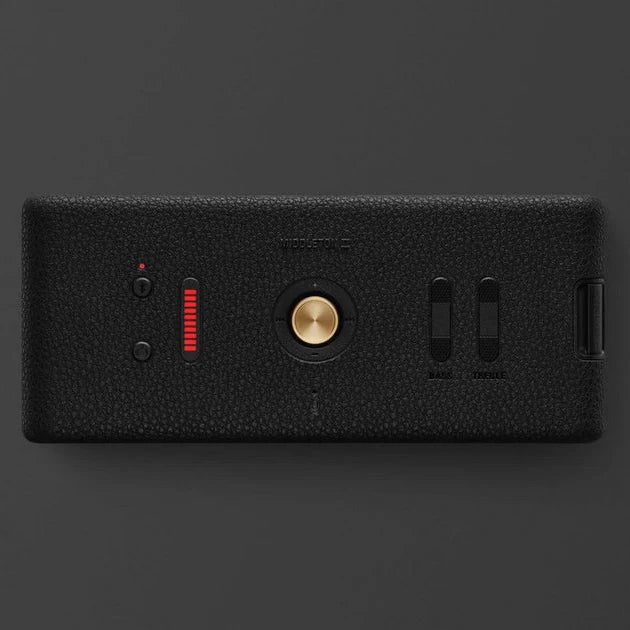 Корпус Middleton II має міцне прогумоване покриття та металеві акценти, що додають стилю й забезпечують захист від пилу та вологи за стандартом IP67. Акумулятор забезпечує понад 30 годин безперервної роботи, а функція швидкої зарядки дозволяє отримати кілька годин музики всього за 20 хвилин. Колонка також може працювати як павербанк, заряджаючи ваш смартфон у дорозі.