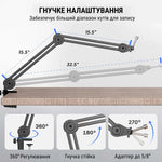 Fifine BM63 – це настільна стійка-пантограф для мікрофона. Призначена для встановлення мікрофону в тісних умовах, наприклад, в апаратних кімнатах радіостанцій, у невеликих студіях або в домашніх умовах. Кріпиться до поверхні за допомогою затискача. Підставка здатна витримати вагу практично будь-якого мікрофона, максимальне навантаження до 2 кг.