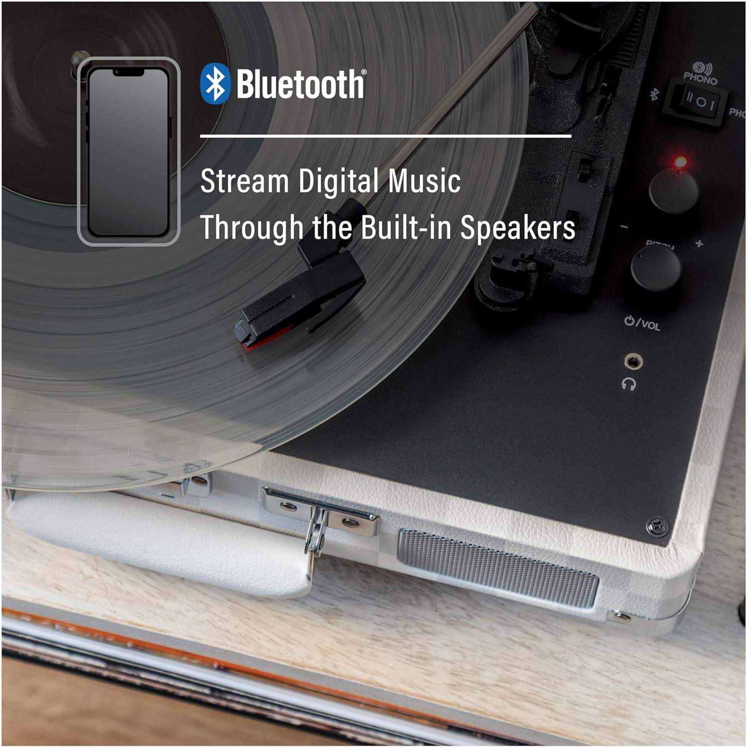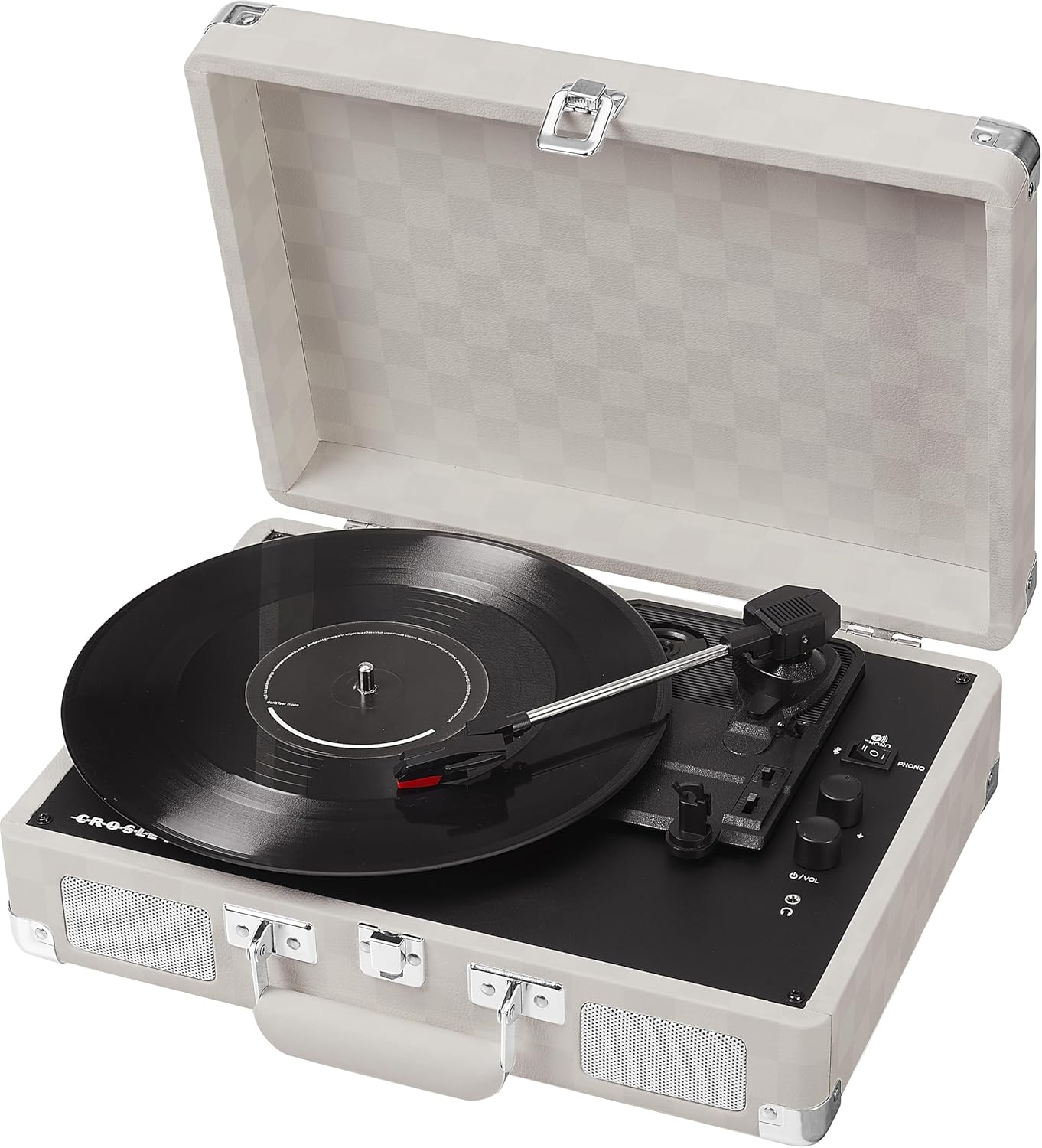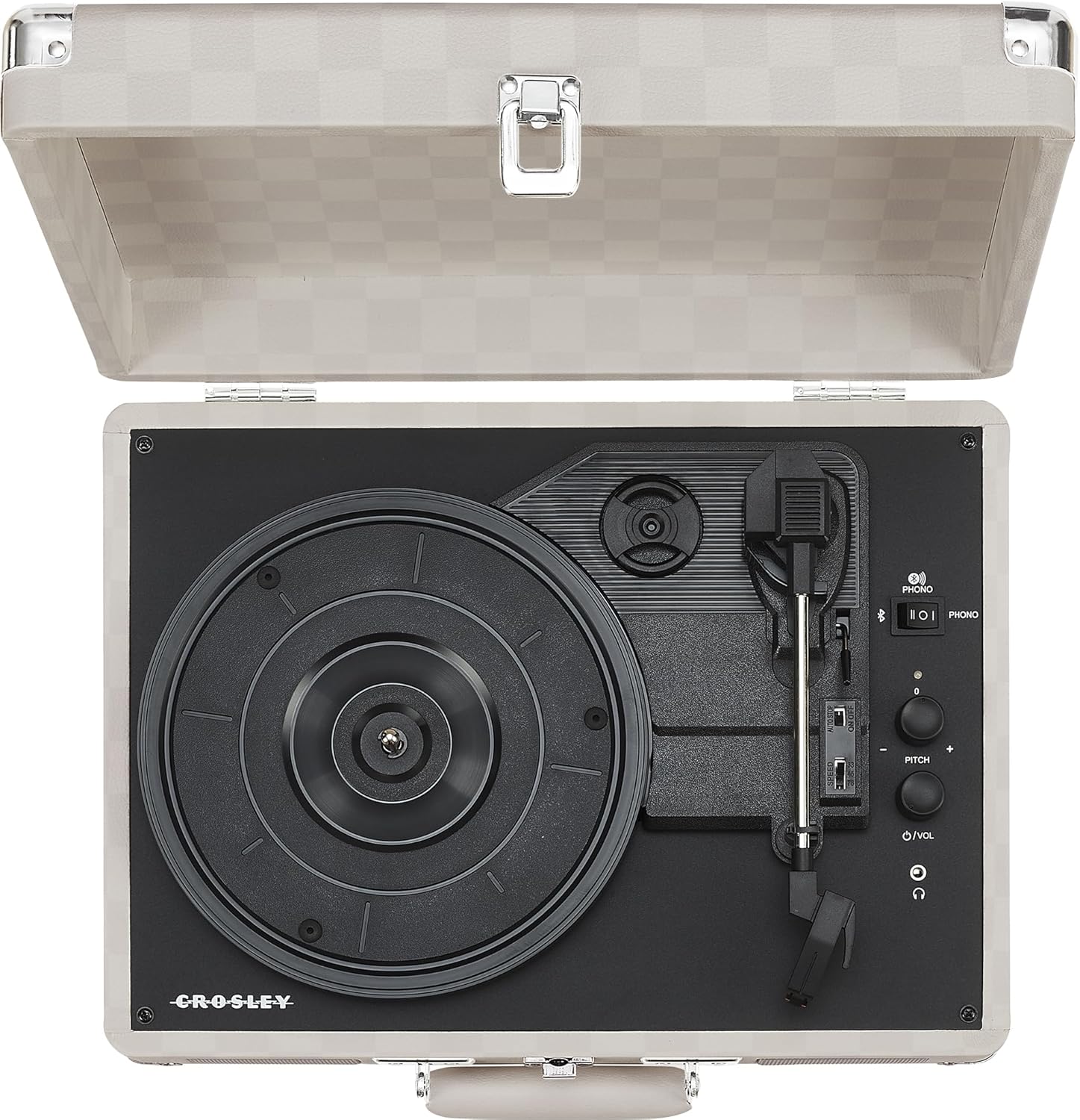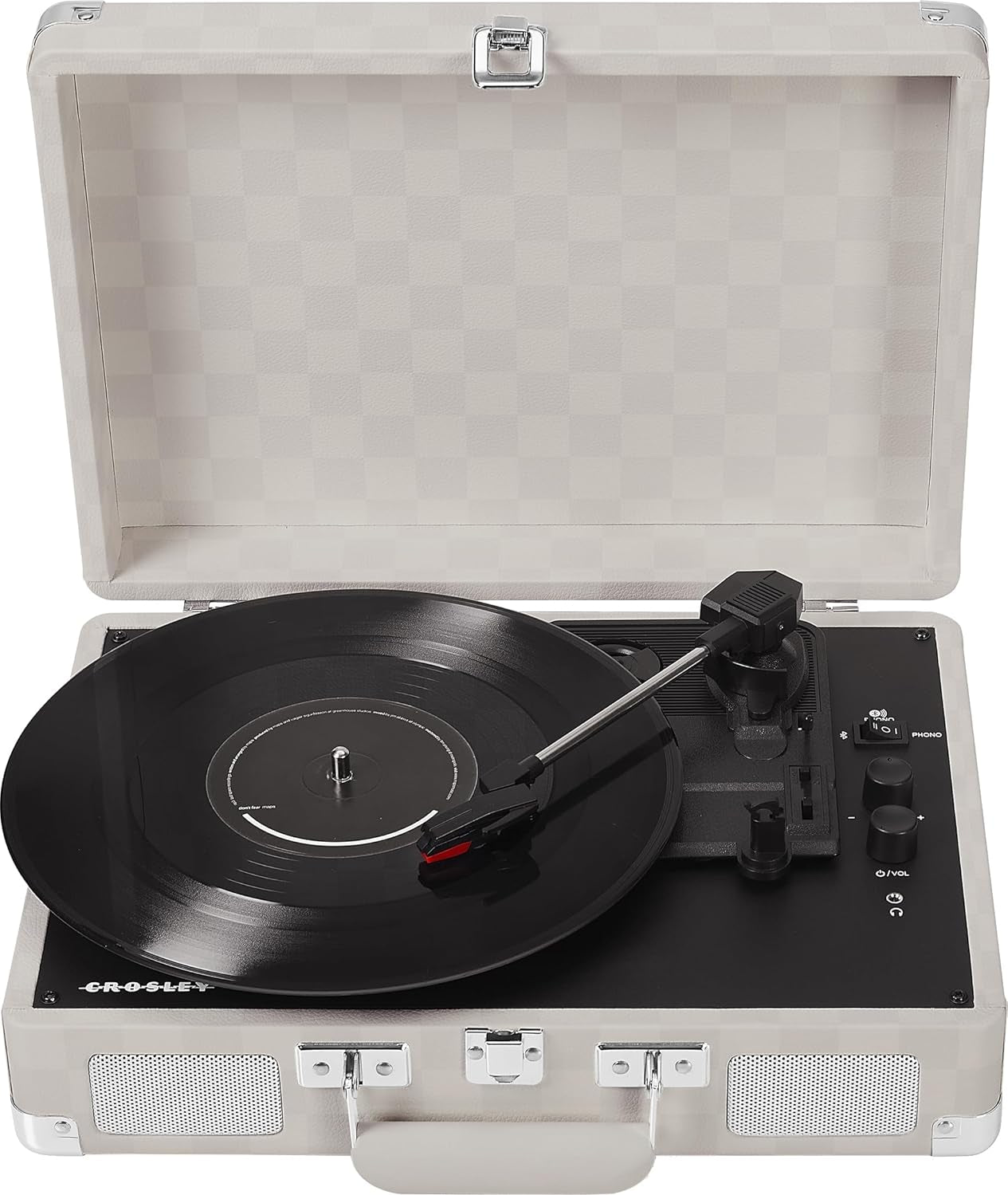 Представляємо Crosley Cruiser Deluxe ! Цей програвач, як і раніше, має чарівний корпус у вигляді валізи, але тепер ви можете налаштовувати швидкість запису за допомогою розширених налаштувань управління висотою звуку або легко синхронізуватися зі з'єднанням Bluetooth і транслювати цифрову музику прямо через вбудовані динаміки. Влаштовуйте джеми один на один з роз'ємом для навушників або під'єднуйте динаміки через порти RCA, щоб звучати голосно. Виберіть з веселки звуків, щоб почати свою пригоду з вінілом з цим портативним трьохшвидкісним програвачем.