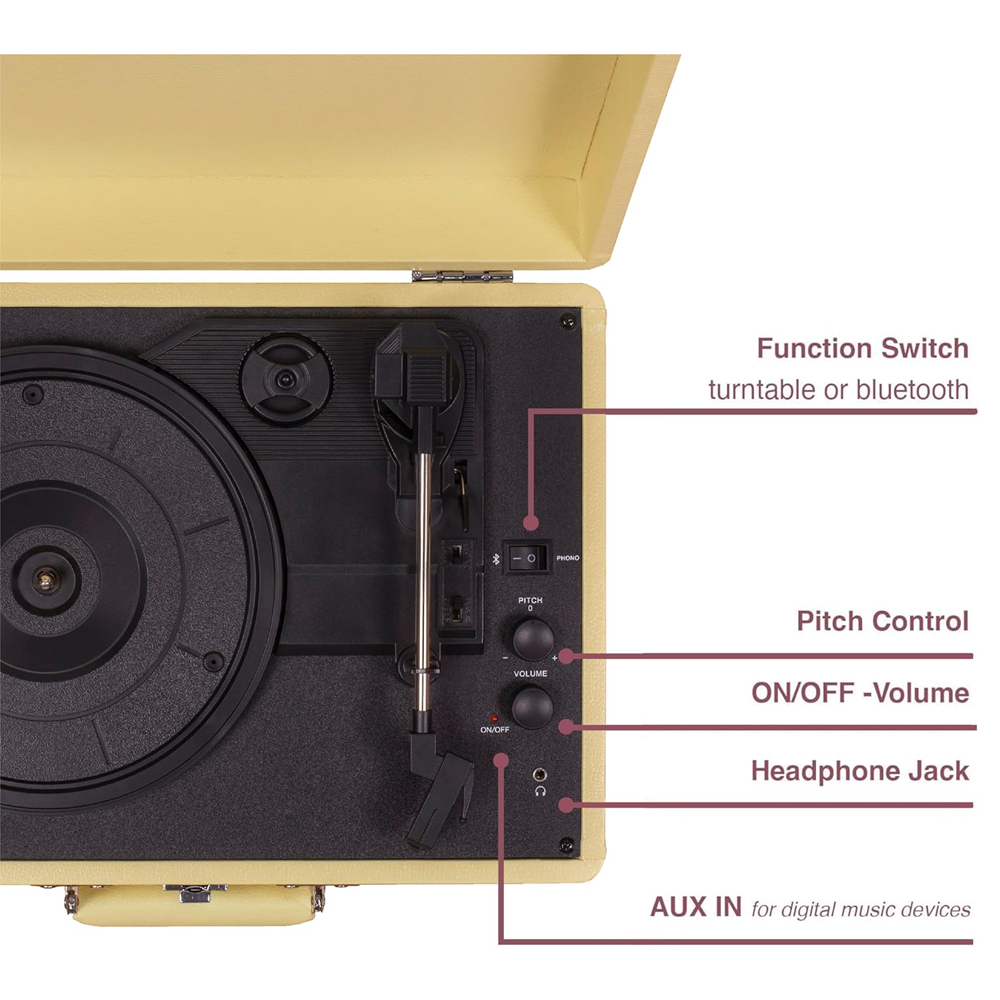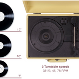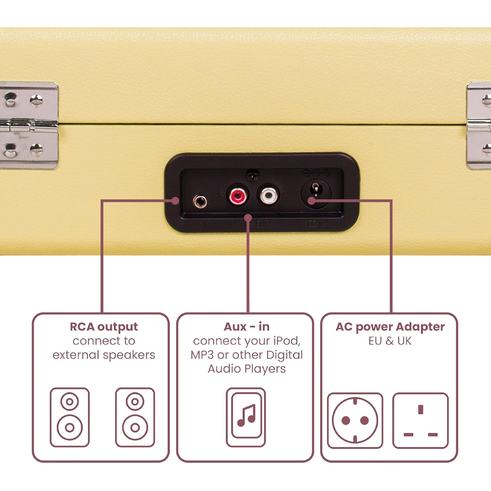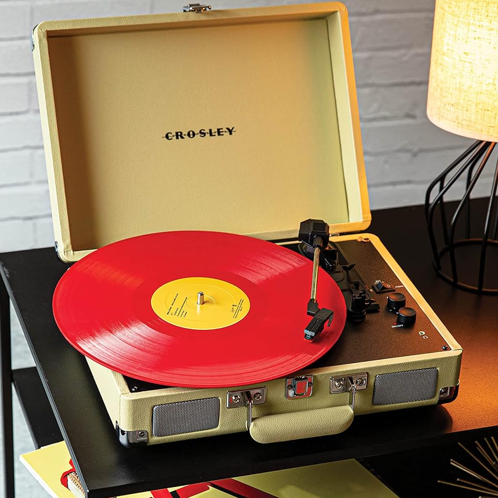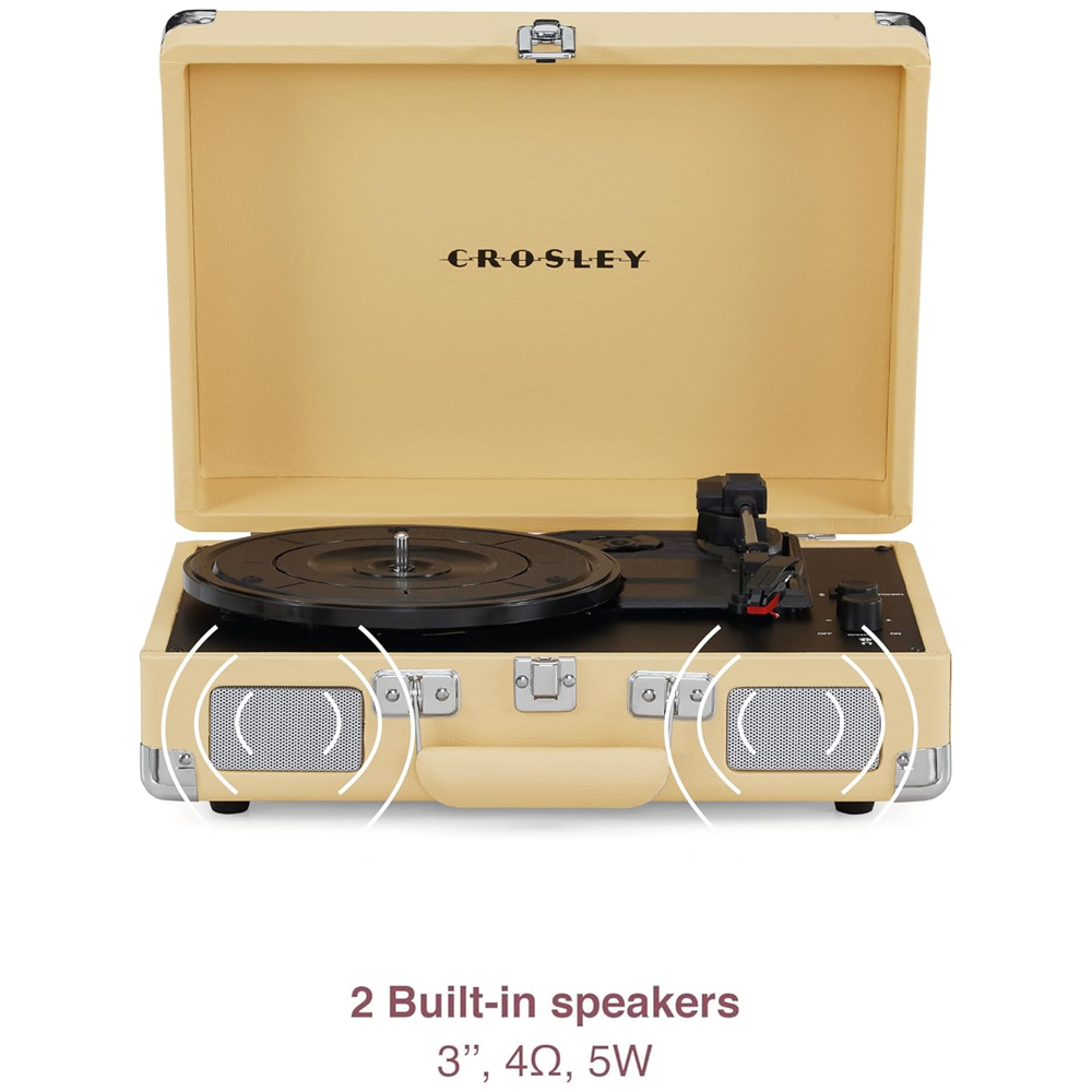 Представляємо Crosley Cruiser Deluxe ! Цей програвач, як і раніше, має чарівний корпус у вигляді валізи, але тепер ви можете налаштовувати швидкість запису за допомогою розширених налаштувань управління висотою звуку або легко синхронізуватися зі з'єднанням Bluetooth і транслювати цифрову музику прямо через вбудовані динаміки. Влаштовуйте джеми один на один з роз'ємом для навушників або під'єднуйте динаміки через порти RCA, щоб звучати голосно. Виберіть з веселки звуків, щоб почати свою пригоду з вінілом з цим портативним трьохшвидкісним програвачем.