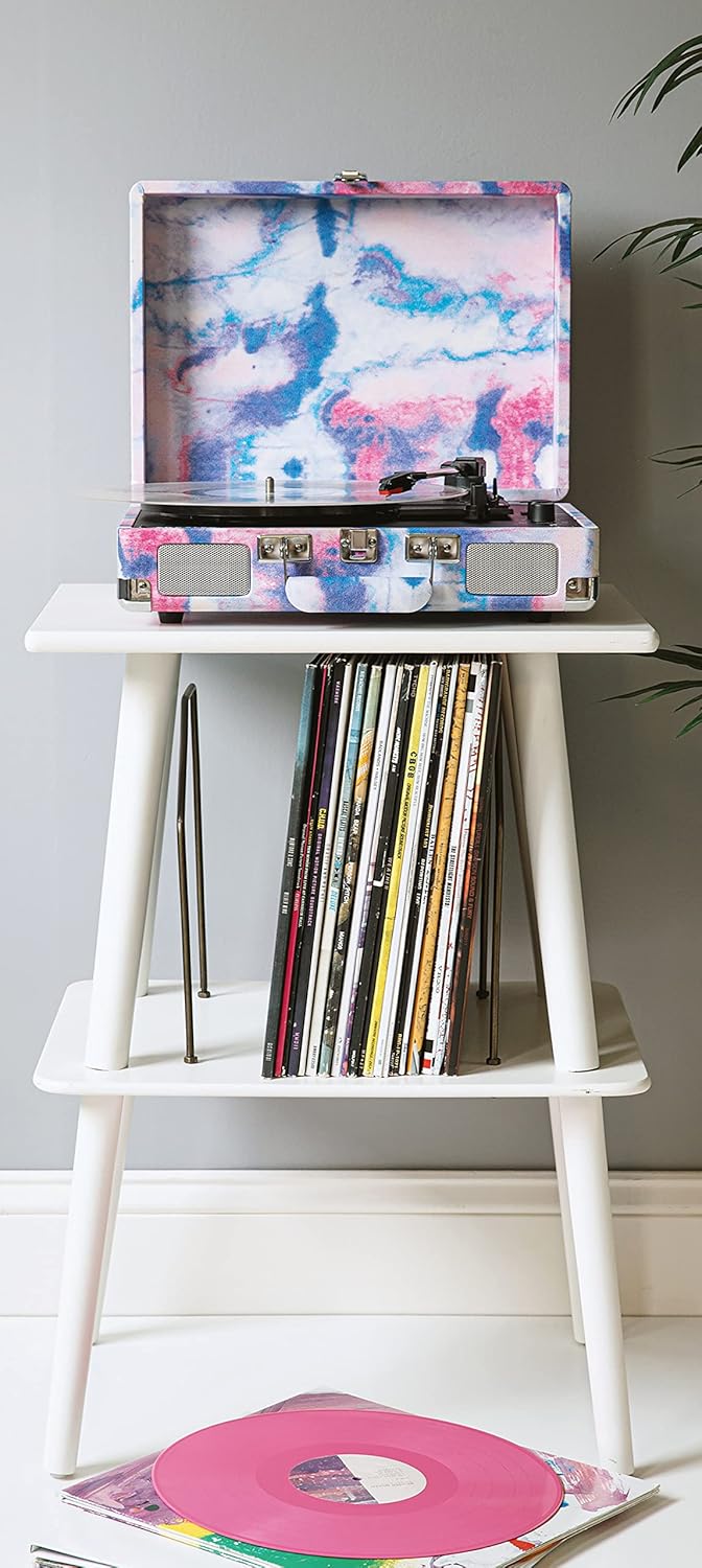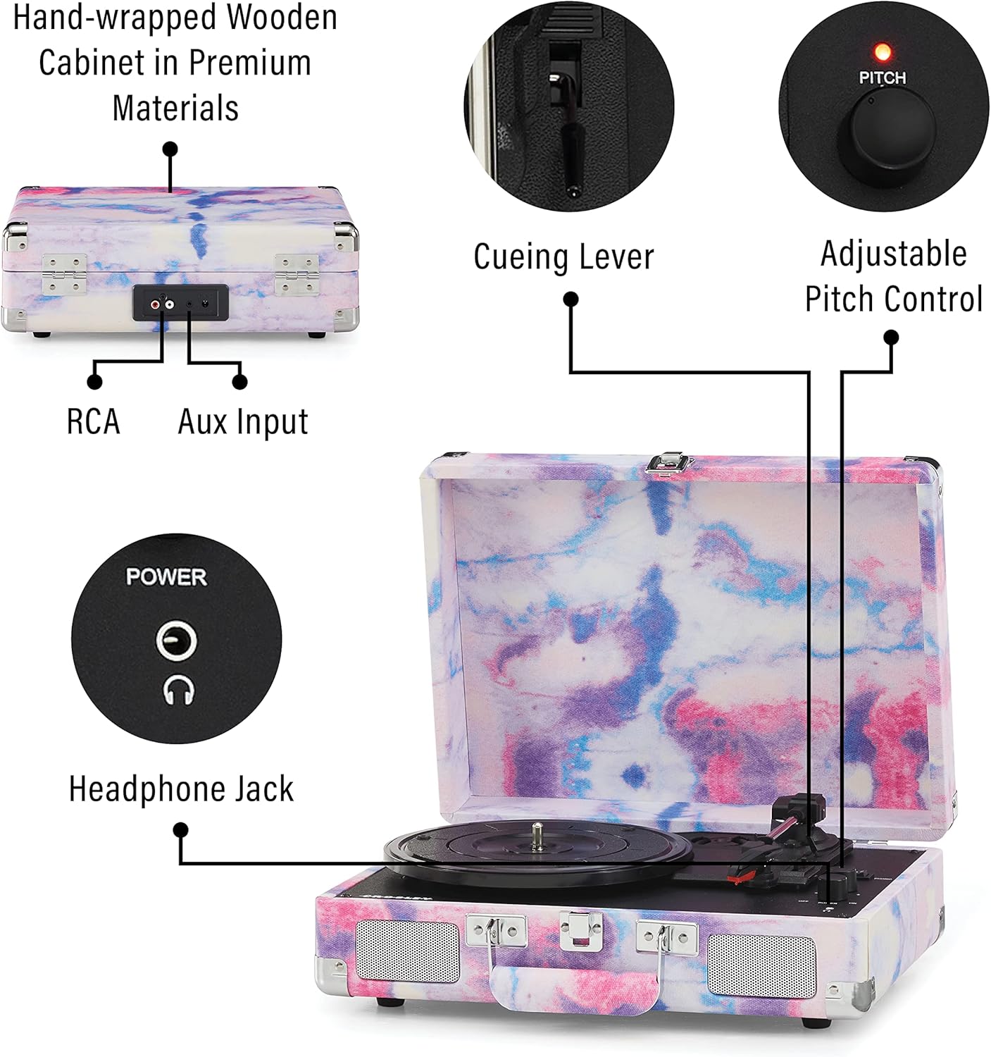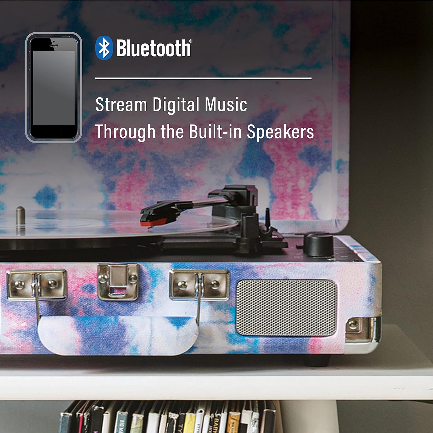 Представляємо Crosley Cruiser Deluxe ! Цей програвач, як і раніше, має чарівний корпус у вигляді валізи, але тепер ви можете налаштовувати швидкість запису за допомогою розширених налаштувань управління висотою звуку або легко синхронізуватися зі з'єднанням Bluetooth і транслювати цифрову музику прямо через вбудовані динаміки. Влаштовуйте джеми один на один з роз'ємом для навушників або під'єднуйте динаміки через порти RCA, щоб звучати голосно. Виберіть з веселки звуків, щоб почати свою пригоду з вінілом з цим портативним трьохшвидкісним програвачем.