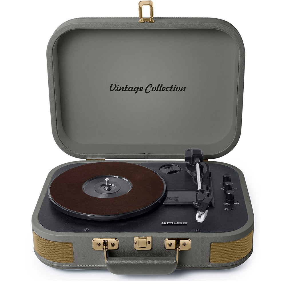 Muse MT-201 — це компактний і стильний вініловий програвач, який поєднує класичний ретро-дизайн із сучасними функціональними можливостями. Він підтримує три швидкості обертання платівок (33, 45 та 78 об/хв), що дозволяє відтворювати різні типи вінілових дисків. Вбудовані стерео динаміки забезпечують чистий і збалансований звук без необхідності підключення зовнішньої акустики, а наявність RCA-виходу та AUX-порту дає можливість під’єднати його до додаткових аудіосистем.