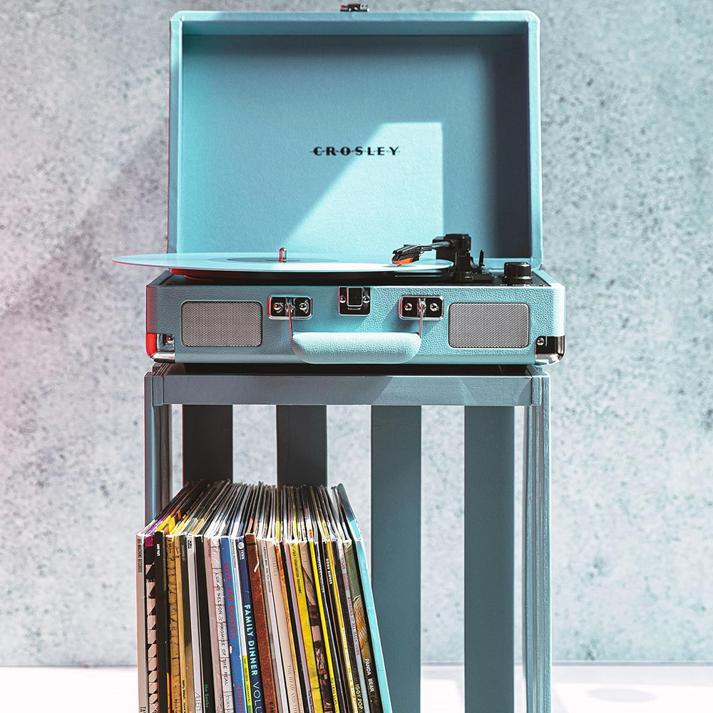 Представляємо Crosley Cruiser Deluxe ! Цей програвач, як і раніше, має чарівний корпус у вигляді валізи, але тепер ви можете налаштовувати швидкість запису за допомогою розширених налаштувань управління висотою звуку або легко синхронізуватися зі з'єднанням Bluetooth і транслювати цифрову музику прямо через вбудовані динаміки. Влаштовуйте джеми один на один з роз'ємом для навушників або під'єднуйте динаміки через порти RCA, щоб звучати голосно. Виберіть з веселки звуків, щоб почати свою пригоду з вінілом з цим портативним трьохшвидкісним програвачем.