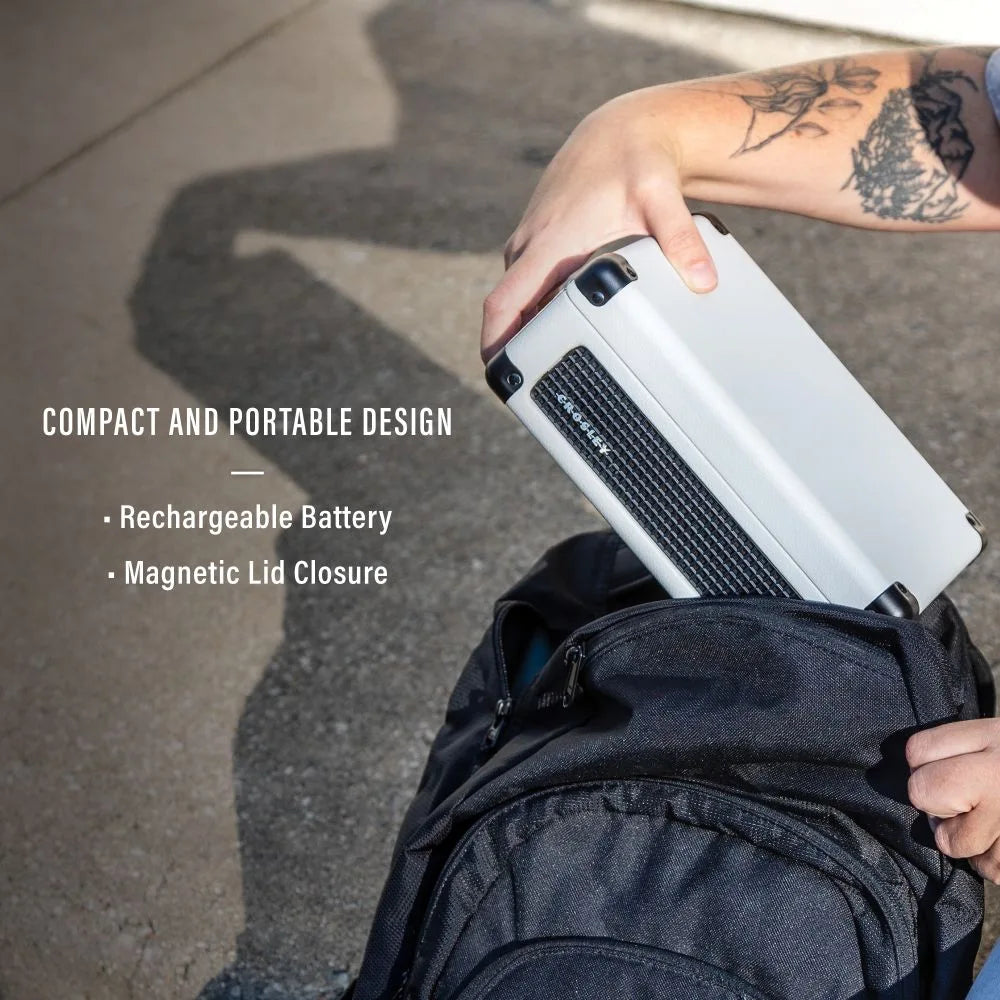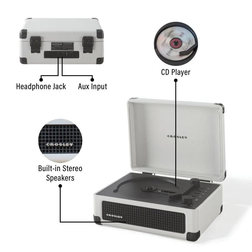 Crosley Cruiser CD Player — компактний CD-плеєр у фірмовому «валізному» дизайні Crosley, створений для тих, хто хоче слухати улюблені диски без зайвих складнощів. Він поєднує вінтажний стиль із сучасним функціоналом, пропонуючи простий спосіб насолоджуватися музикою вдома, у студії чи в подорожі. Легкий корпус і зручна ручка роблять його максимально портативним, а вбудовані динаміки дозволяють слухати музику без додаткових пристроїв.