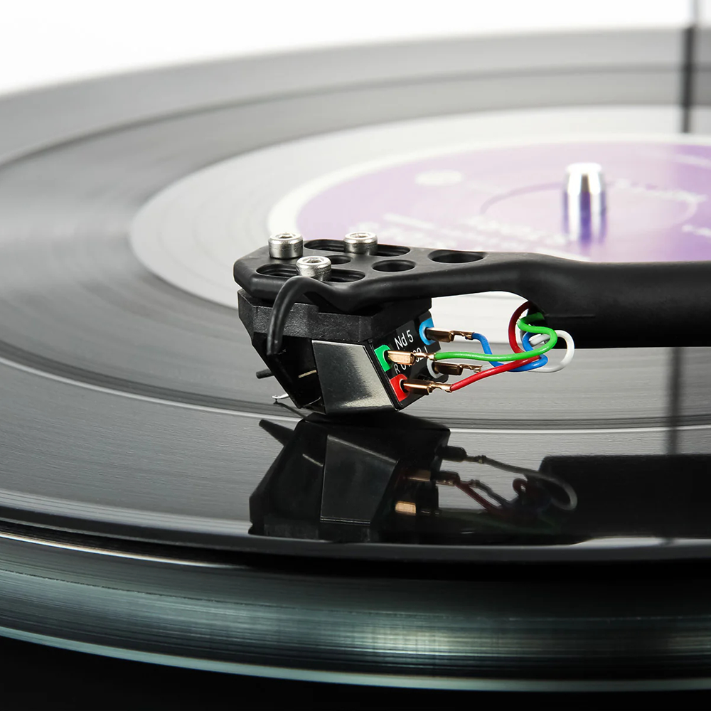 Картридж Rega Nd5 MM, що йде в комплекті, вирізняється деталізованим і збалансованим звучанням. Завдяки еліптичному профілю голки він передає виразні високі частоти, насичені середні й глибокі баси. Вихідна напруга становить 5 мВ, а частотний діапазон сягає від 20 Гц до 20 кГц, що робить його універсальним рішенням для більшості стереосистем.
