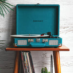 Представляємо Crosley Cruiser Deluxe ! Цей програвач, як і раніше, має чарівний корпус у вигляді валізи, але тепер ви можете налаштовувати швидкість запису за допомогою розширених налаштувань управління висотою звуку або легко синхронізуватися зі з'єднанням Bluetooth і транслювати цифрову музику прямо через вбудовані динаміки. Влаштовуйте джеми один на один з роз'ємом для навушників або під'єднуйте динаміки через порти RCA, щоб звучати голосно. Виберіть з веселки звуків, щоб почати свою пригоду з вінілом з цим портативним трьохшвидкісним програвачем.