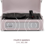 Програвач підтримує три швидкості обертання платівок, а також оснащений AUX-входом і RCA-виходами для підключення навушників або зовнішньої акустики. Його динаміки потужністю 10 Вт дарують м’який і чистий звук, якого цілком вистачить для домашнього прослуховування.