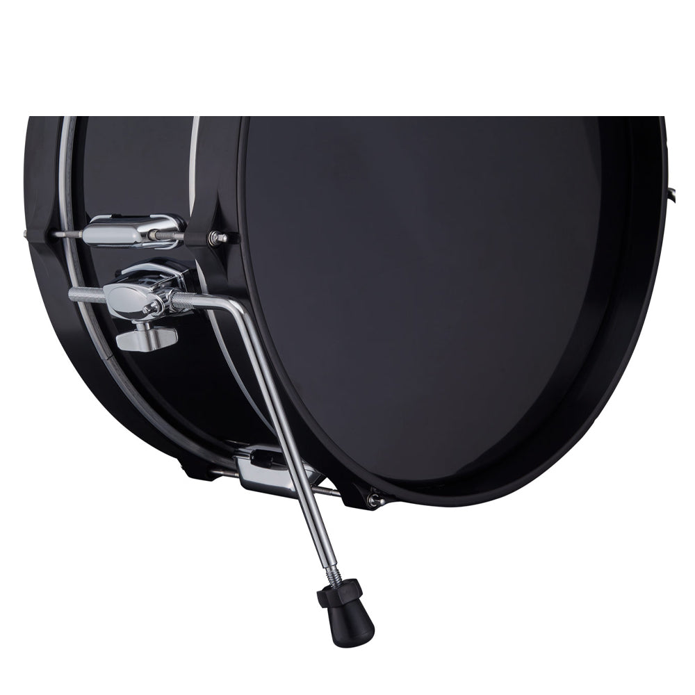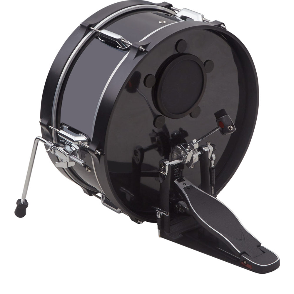 Чорне глянцеве покриття та хромована фурнітура надають інструменту преміального вигляду, який не відрізняється від традиційних ударних установок. Спеціальна конструкція поглинає надмірні вібрації, що дозволяє досягти потужного звучання з мінімальним акустичним шумом. Надійна опора та міцні ніжки запобігають ковзанню педа навіть під час найінтенсивнішої гри подвійною педаллю.
