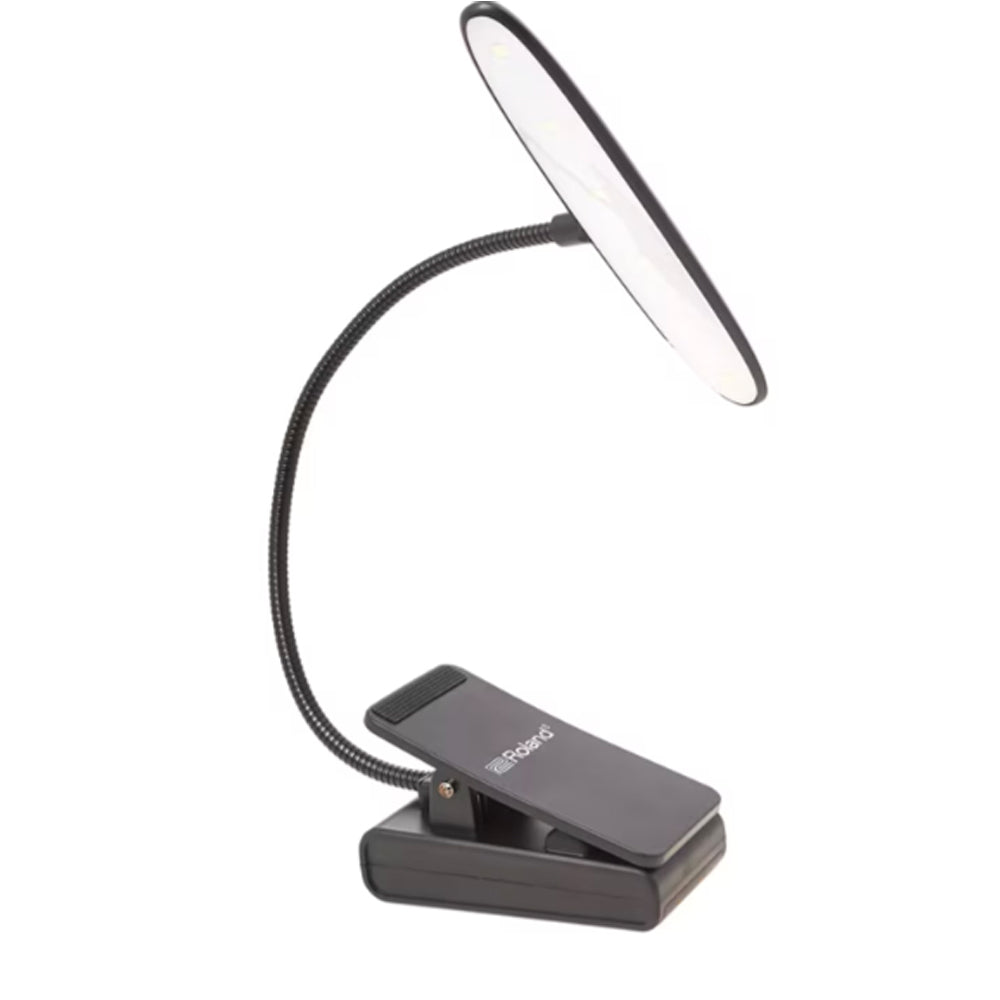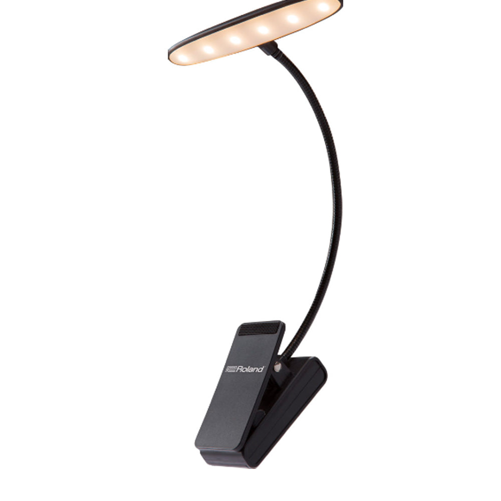 Roland LCL-25W — компактна світлодіодна лампа з кріпленням-кліпсою, розроблена для точкового підсвічування нотних партитур, клавіатур та робочих поверхонь в умовах недостатнього освітлення. Завдяки використанню теплих білих світлодіодів, вона створює м'яке та комфортне візуальне середовище, що не перевтомлює очі під час тривалих концертів чи репетицій. Гнучка металева стійка («гусяча шия») дозволяє миттєво змінювати кут нахилу та напрямок світлового потоку, забезпечуючи рівномірне покриття всієї площини пюпітра.