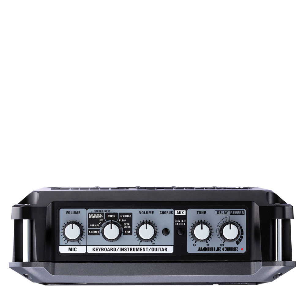 Roland Mobile Cube (MBCUBE) — портативний багатофункціональний стереопідсилювач, розроблений для музикантів, які потребують мобільності без втрати якості звучання. Завдяки компактним габаритам та можливості тривалої роботи від батарейок, він стає незамінним інструментом для вуличних виступів, занять у дорозі або використання як монітора під час репетицій. Два динаміки забезпечують об'ємне стереозвучання, що дозволяє передати всю палітру звуку інструментів та вокалу навіть на відкритому просторі.