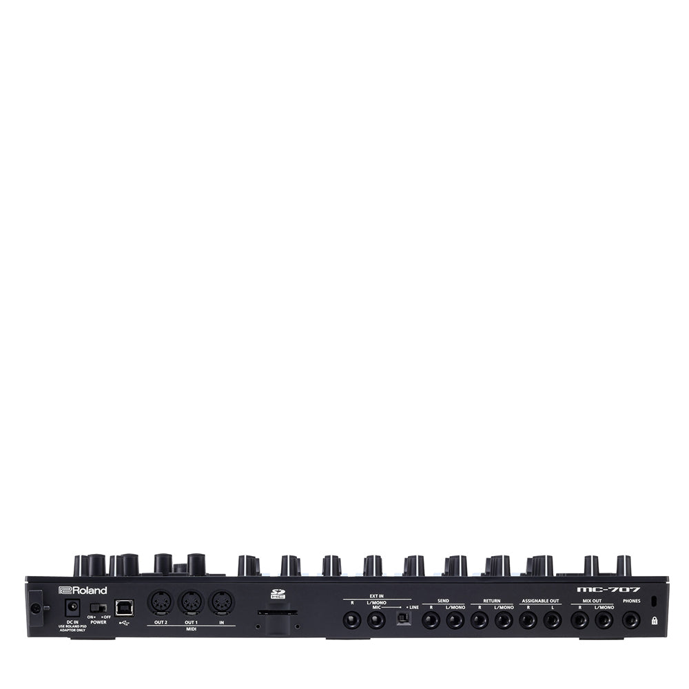 MC-707 підтримує семплювання з зовнішніх джерел і має глибоку інтеграцію з DAW через USB (MIDI та аудіо), що робить її зручною як для студійного продакшену, так і для лайв-виступів. Кожен трек має доступ до ефектів, включаючи компресори, ділей, реверберацію та фільтри, що дає широкі можливості для саунд-дизайну. Грувбокс також підтримує імпорт і експорт проектів, лупів та семплів через SD-карту, що значно спрощує мобільну роботу. Roland MC-707 — це універсальний інструмент для сучасного музиканта, який поєднує класичні традиції Roland з гнучкістю цифрової епохи.