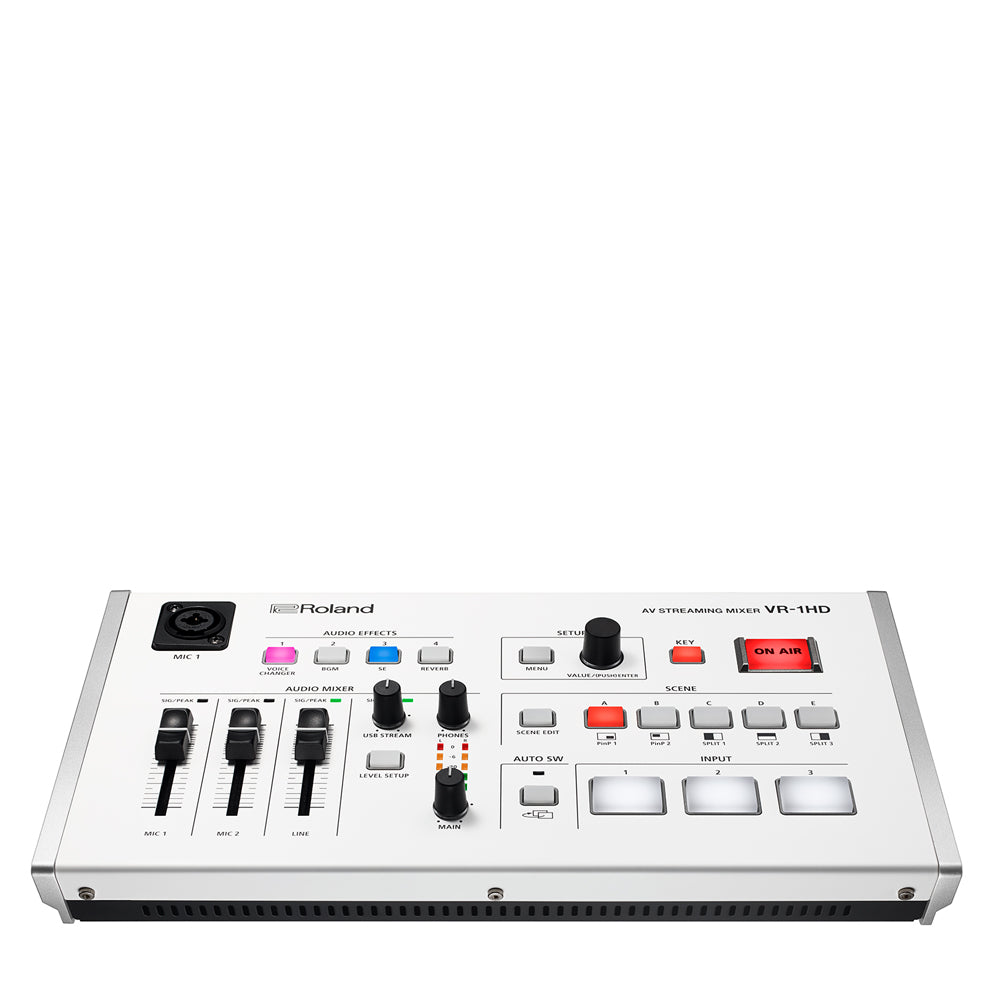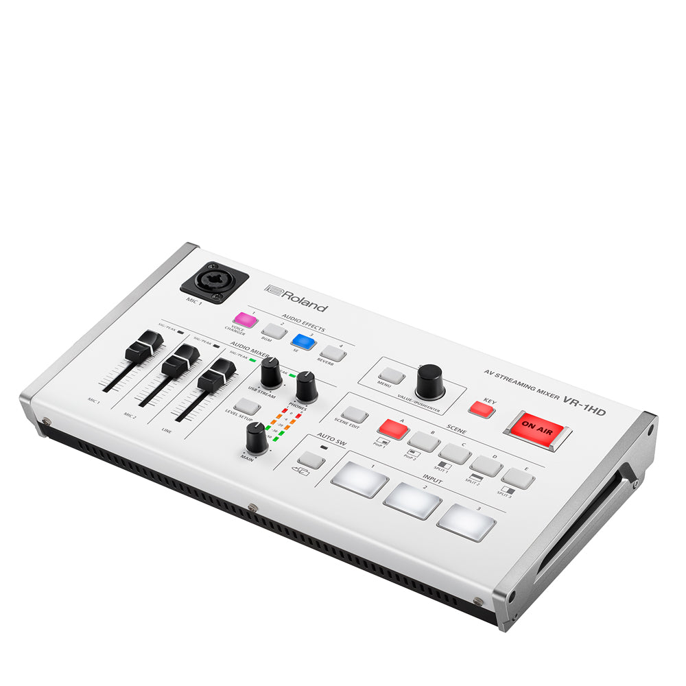 Roland VR-1HD — динамічний AV-мікшер, що дозволяє одному ведучому керувати професійним багатокамерним стрімом. Інструмент ідеальний для подкастерів та коментаторів, які не мають оператора, адже він має інтелектуальний режим «Відео Слідує за Аудіо»: мікшер автоматично перемикає ракурси, реагуючи на голос спікера. Три входи HDMI та XLR-вхід для професійного мікрофона дозволяють тобі зосередитися на контенті, а не на пультах, спрощуючи найскладніші ефіри.