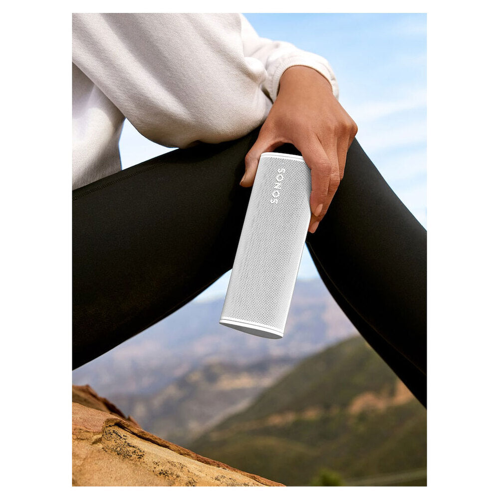 Sonos Roam — ультрапортативна розумна колонка з підтримкою Wi-Fi та Bluetooth, яка забезпечує відмінне звучання вдома і поза ним. Вона автоматично переключається між Wi-Fi для домашнього стрімінгу та Bluetooth для використання на вулиці, гарантуючи безперебійне відтворення. Компактна і легка, Roam легко поміщається в сумку або кишеню. Функція Sound Swap дозволяє швидко переносити звук між пристроями Sonos одним натисканням кнопки. Колонка сумісна з багатьма потоковими сервісами та підтримує голосове керування через Amazon Alexa, Google Асистент і Apple AirPlay 2. Її акустика налаштована провідними інженерами, забезпечуючи насичене, детальне звучання з глибиною і чіткістю, характерними для великих колонок. Автоматичне налаштування Trueplay адаптує звук під особливості приміщення навіть при відтворенні через Bluetooth. Корпус міцний і водонепроникний за стандартом IP67, витримує занурення до метра на 30 хвилин і має захист від пилу, ударів і падінь. Час роботи до 10 годин, а акумулятор тримає заряд до 10 днів у режимі очікування. Для заряджання можна використовувати USB-C, бездротові зарядки стандарту Qi або магнітний зарядний пристрій Sonos. Упаковка виконана з екологічно чистих матеріалів, що відповідає принципам екологічності компанії.