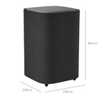 Сабвуфер має тканинну обробку Kvadrat, яка не тільки виглядає елегантно, а й стійка до забруднень і вогню. Завдяки автоматичним оновленням програмного забезпечення пристрій завжди підтримує найсучасніші функції.