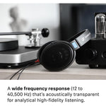 Sennheiser HD 600 – це легендарні відкриті динамічні навушники, які вже багато років вважаються еталоном серед аудіофілів і професіоналів. Їхня конструкція забезпечує надзвичайно натуральне й просторе звучання з широким частотним діапазоном 12–40 500 Гц. Завдяки імпедансу 300 Ом вони розкривають свій потенціал у поєднанні з якісними підсилювачами, даруючи чисте та збалансоване звучання.