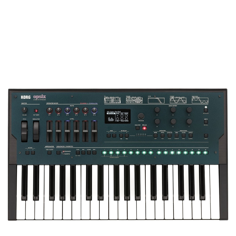 Opsix оснащений вбудованим ефектовим блоком, що включає реверберацію, дилей, хорус та інші модульні ефекти, а також потужним арпеджіатором та секвенсером для живих виступів і студійного продакшену. Його компактний корпус і легка вага дозволяють легко інтегрувати синтезатор у будь-який студійний сетап або брати на сцену. Сучасний FM-двигун KORG opsix розширює креативні можливості музикантів, надаючи абсолютно нові тембри та виразні можливості для експериментів зі звуком.