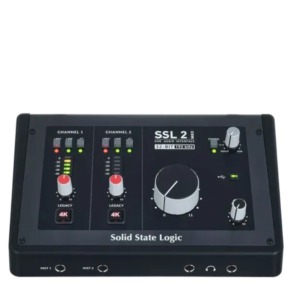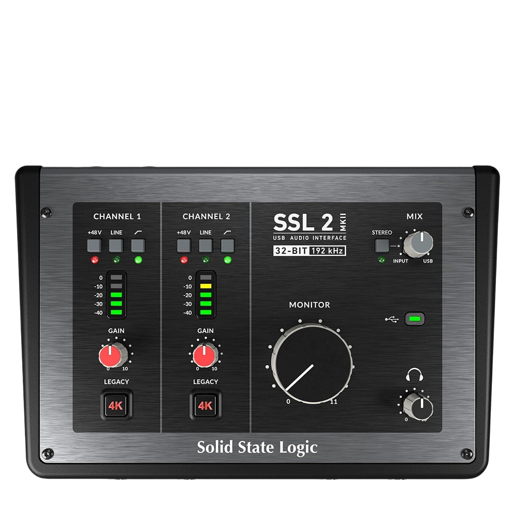Фірмовий режим Legacy 4K Analogue Enhancement додає записам характерне тепле аналогове звучання, натхненне легендарною консоллю SSL 4000. SSL 2 MKII має два комбіновані входи (XLR/TRS) для мікрофонів, інструментів або лінійних джерел, два балансні виходи L/R, а також два окремі виходи для навушників із незалежним регулюванням гучності. Корпус інтерфейсу виконаний із міцного металу, а елементи керування — з використанням високоякісних компонентів Neutrik і Alps.