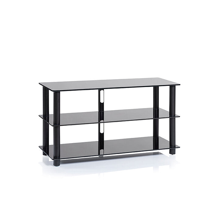 Norstone Epur 3 AV — це стильна тумба/AV-стійка, розроблена для розміщення телевізора, комплекту домашнього кінотеатру та центрального динаміка. Відкрита конструкція дозволяє легко діставатися до обладнання, забезпечує хороший повітряний потік для охолодження електроніки, а задній простір для кабелів та спеціальні канали допомагають підвести дроти акуратно. Естетика Epur 3 поєднує сучасний промисловий дизайн із матеріалами високої якості: металева рама й скляні полиці дають відчуття міцності й легкості водночас.