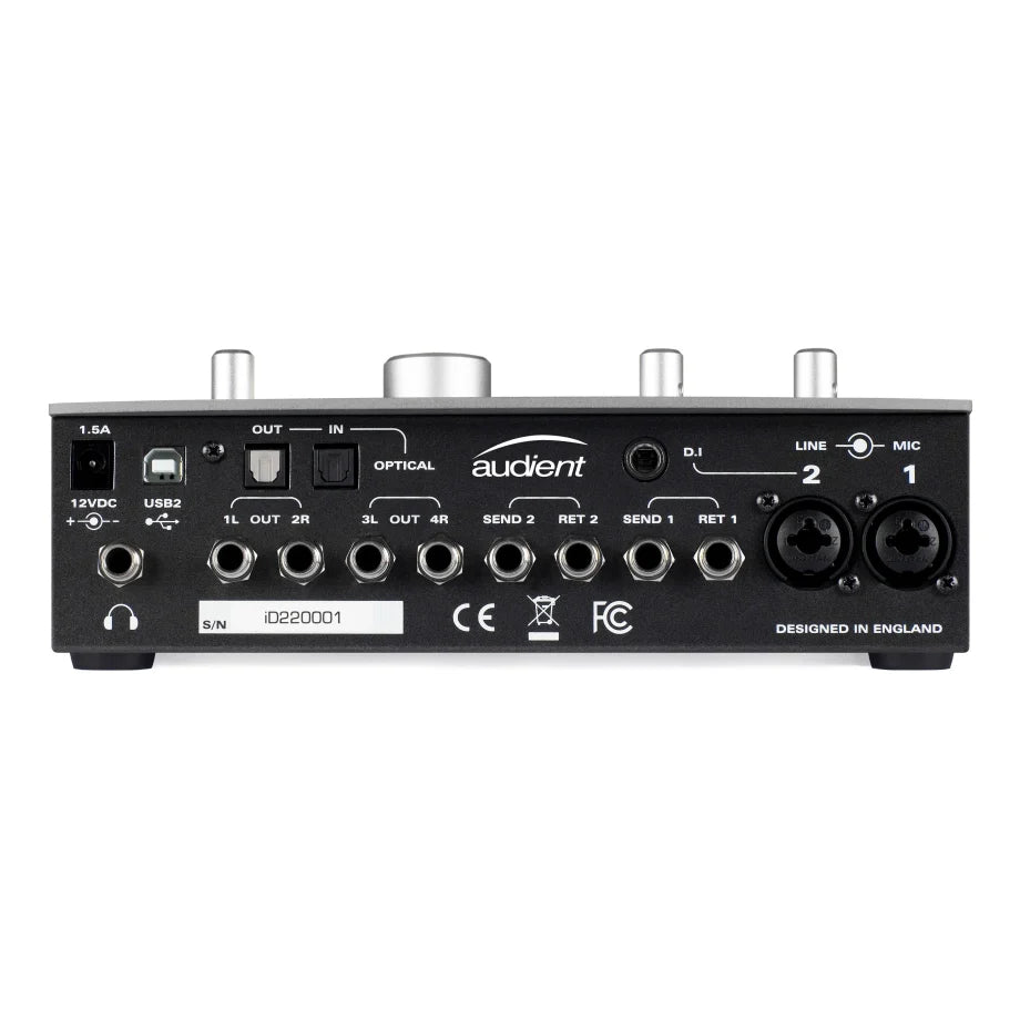 Інтерфейс підтримує роздільну здатність до 24 біт / 96 кГц і має до 10 входів і 14 виходів (аналогових та цифрових). Передбачено два виходи для моніторів, незалежний вихід для навушників, функції Talkback, Mono Sum, Dim і програмовані клавіші. Завдяки міцному металевому корпусу та продуманій ергономіці Audient iD22 ідеально підходить для професійного запису та моніторингу без компромісів.