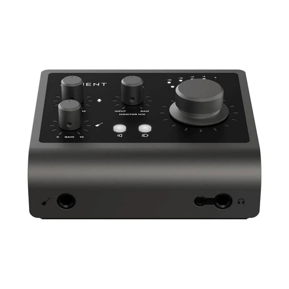 Пристрій має металевий корпус, функцію ScrollControl для керування параметрами DAW, моніторинг без затримки, а також два виходи для навушників (¼″ і ⅛″), що зручно для спільної роботи. Завдяки живленню через USB-C без зовнішнього адаптера Audient iD4 MkII є ідеальним рішенням для студійного запису, подкастингу та мобільних проєктів.