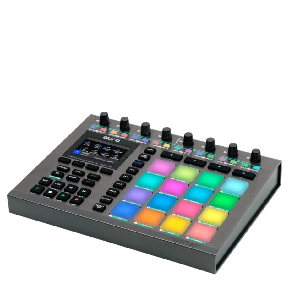 Nektar AURA — потужний MIDI-контролер із 16 гіперчутливими педами з RGB-підсвічуванням, створений для повного контролю над ритмом, семплами та плагінами. Вбудований покроковий секвенсор і гнучкий механізм повтору педів забезпечують інтуїтивний, динамічний та натхненний робочий процес як у студії, так і на сцені.