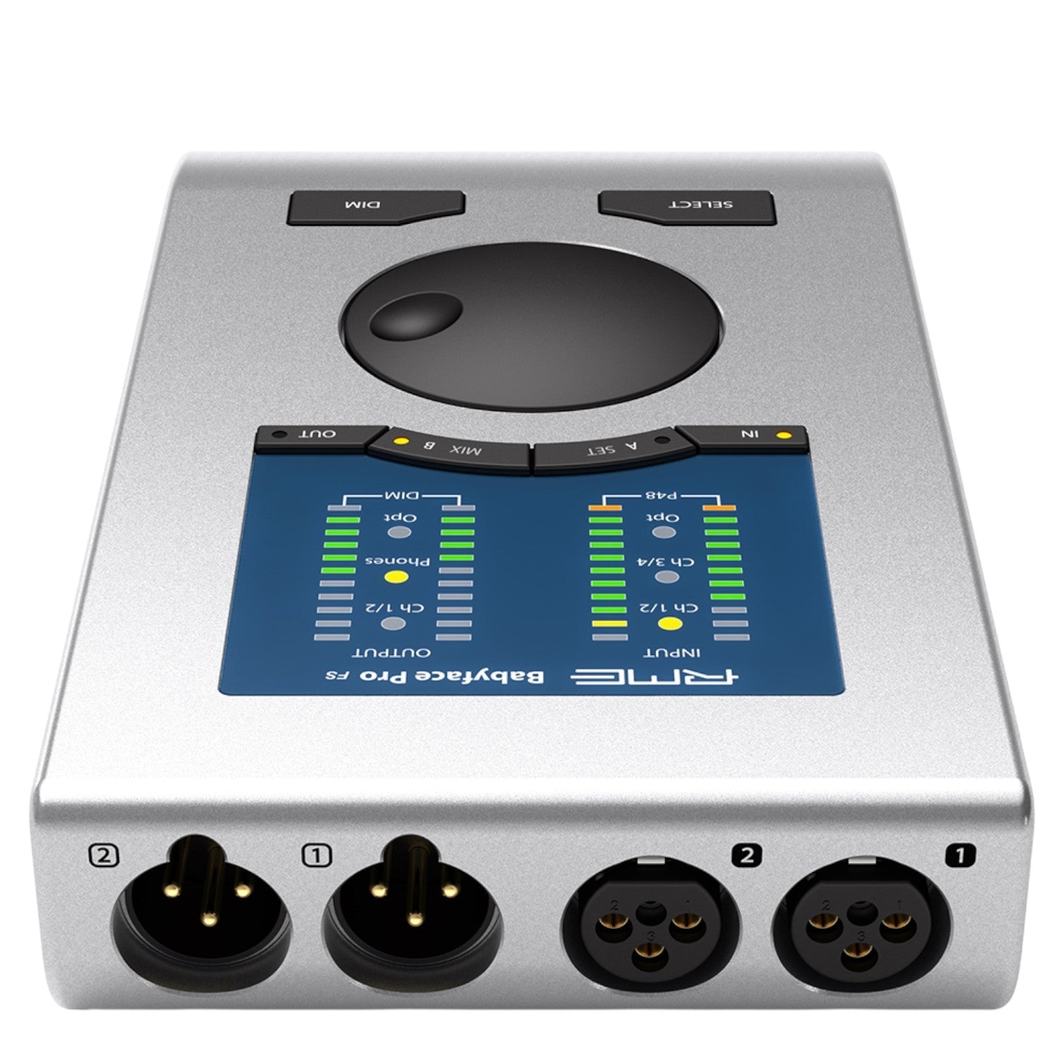 Аудіоінтерфейс отримав нові передпідсилювачі з цифровим керуванням і фантомним живленням 48 В, що окремо вмикається для кожного каналу, із запасом підсилення до 65 дБ. У комплекті йде потужний мікшер TotalMix FX з реверберацією, EQ та компресією, а також додаток TotalMix Remote для дистанційного керування з iOS, Windows і macOS. RME Babyface Pro FS підтримує підключення через USB 2.0, має розширення ADAT In/Out, MIDI, подвійні XLR та TRS входи, два виходи для навушників і навіть роз’єм Kensington Lock для безпеки при мобільному використанні.