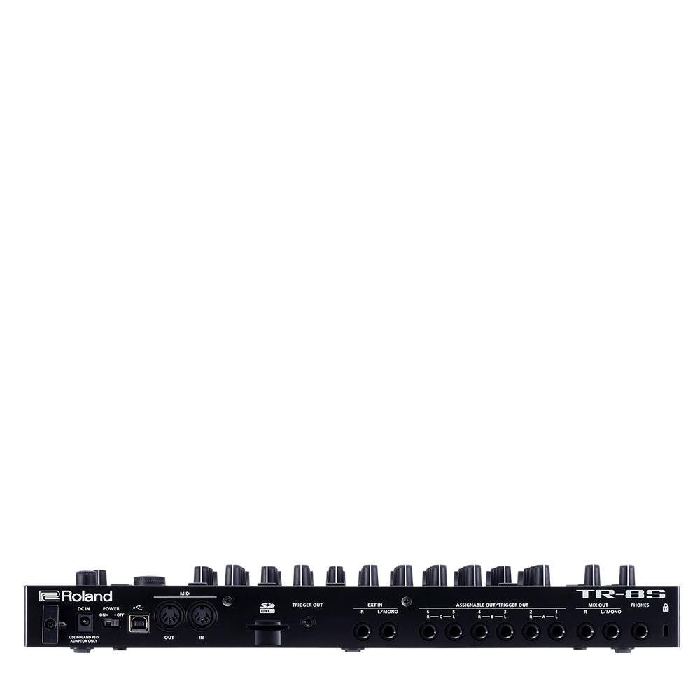 У пристрої реалізовано 16-кроковий секвенсор із можливістю використання до 8 варіацій на патерн, автоматизації параметрів у реальному часі та функціями fill-in. Є 11 незалежних частин для ударних, окрема частина для тригера, зовнішні входи, розширені аудіовиходи, підтримка MIDI, синхронізація через USB і повноцінна інтеграція як багатоканального аудіо/MIDI інтерфейсу. Набір ефектів включає Insert FX і Master FX, які можна застосовувати до кожного треку окремо, а керування здійснюється через ручки, енкодери й кольорову підсвітку. TR-8S — це живий інструмент, створений для сцени, студії та експериментів.