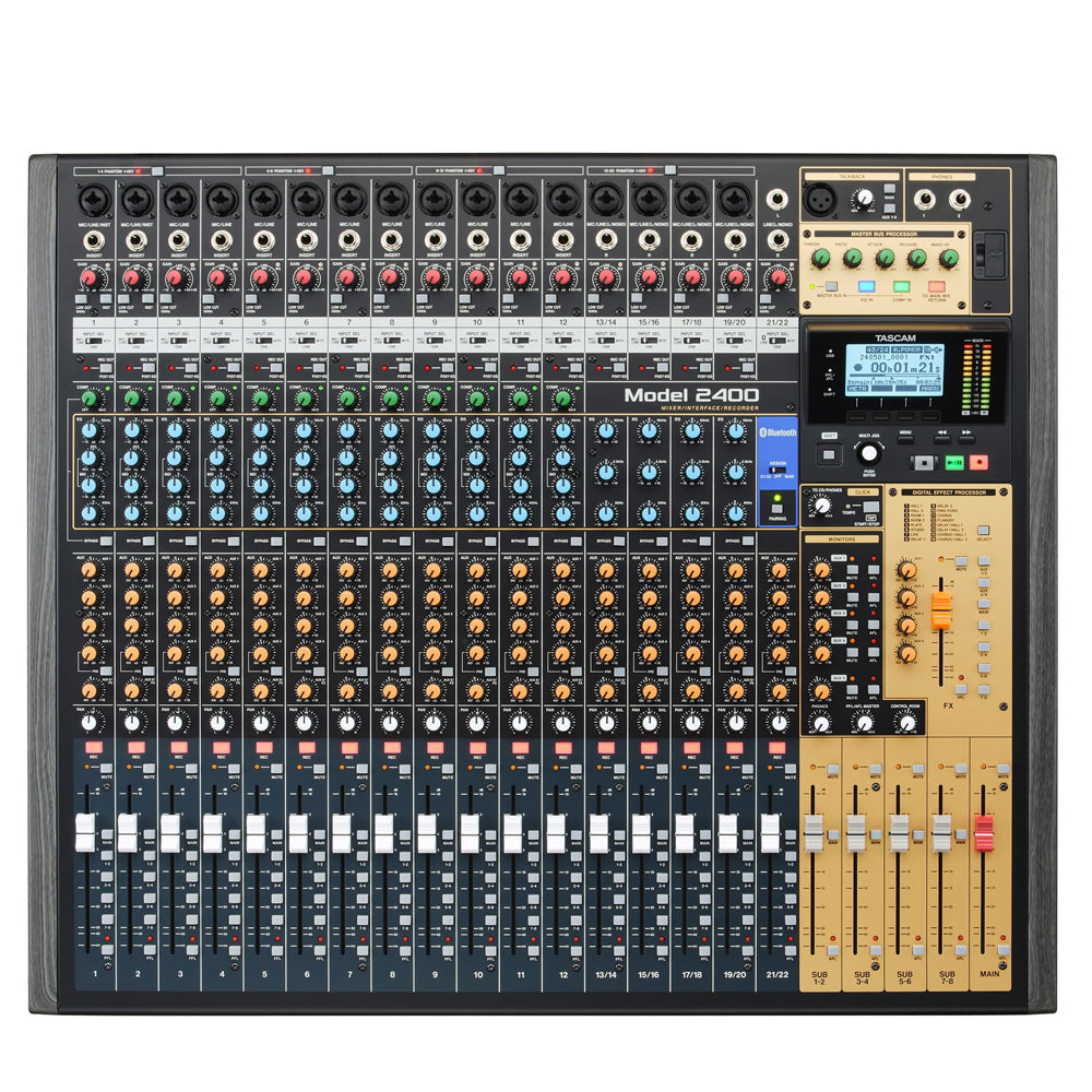 Tascam Model 2400 – професійний студійний аналоговий мікшер із вбудованим багатоканальним рекордером, створений для музикантів, продюсерів і звукорежисерів, які цінують надійність та якість звуку. Цей комбінований пристрій дозволяє здійснювати одночасний запис, мікшування та відтворення аудіо в студійних і концертних умовах, забезпечуючи максимально ефективну роботу з сигналом.