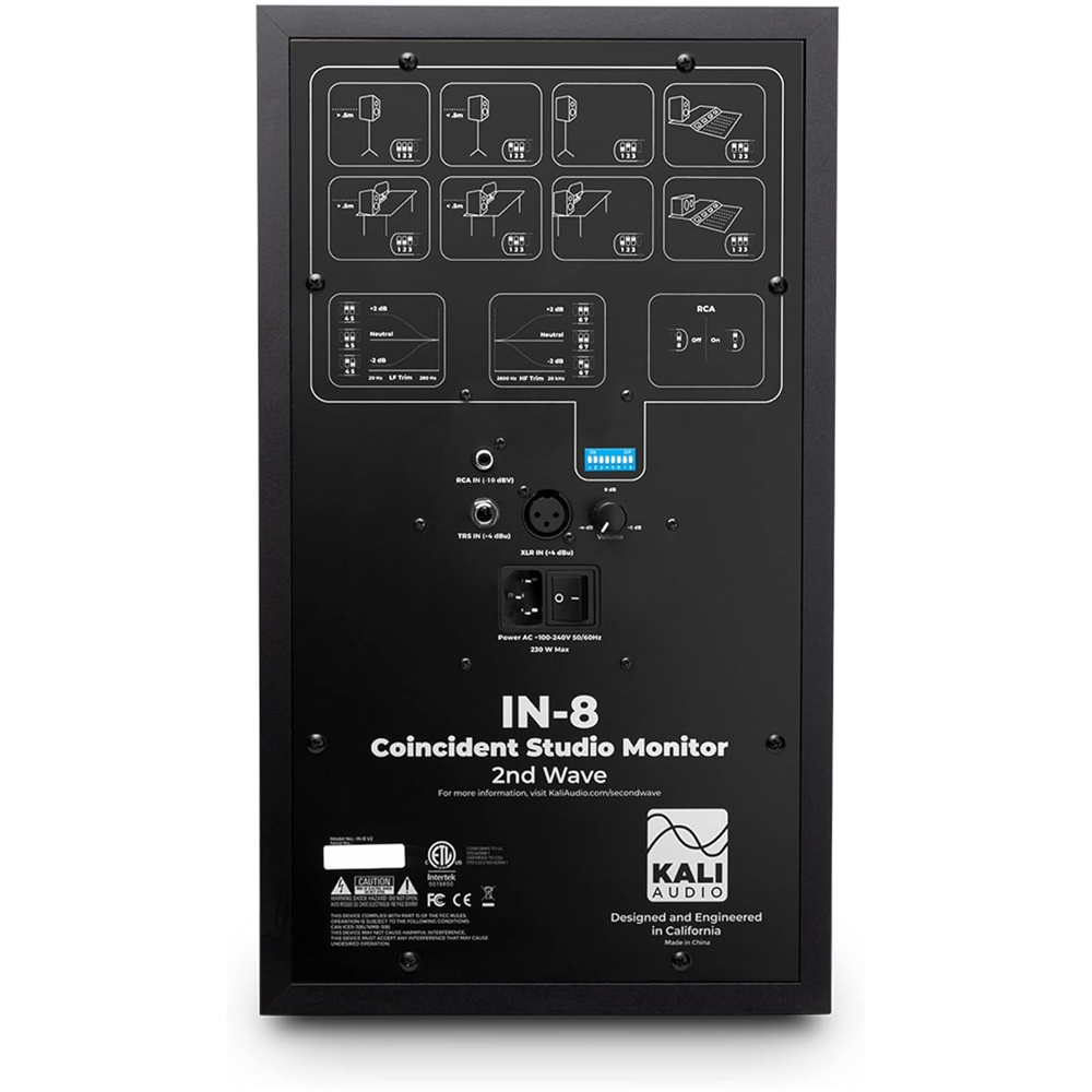Kali Audio IN-8 V2 – друге покоління трисмугового коаксіального студійного монітора з новою платформою підсилювача, покращеними перетворювачами, DSP-процесором і модернізованим корпусом. Коаксіальна конструкція поєднує 8" низькочастотний, 4" середньочастотний і 1" високочастотний драйвер в одному акустичному центрі, забезпечуючи точне стереозображення.
