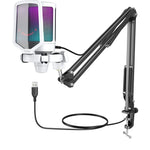 FIFINE A6TW — конденсаторний USB-мікрофон із пантографом, створений для стріму, подкастів і запису голосу вдома чи в офісі. Кардіоїдна спрямованість зосереджується саме на голосі та зменшує сторонні шуми, тому звук виходить чистим і контрольованим. Регульований пантограф допомагає встановити мікрофон у зручному положенні, звільняючи місце на столі, а поп-фільтр прибирає зайві «п» і «б» — без вибухових приголосних у записі.
